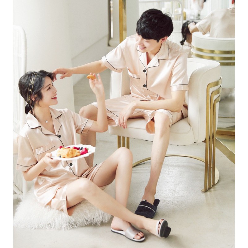 Janylucy 🐰 เหลือ 92 โค้ด WUGCFN ♥️ชุดนอนผ้าซาติน♥️ แขนสั้น+ขาสั้น ชาย-หญิง 8 สี M-2XL ชุดนอนผู้หญิง ถูกที่สุด🔥 #SS21