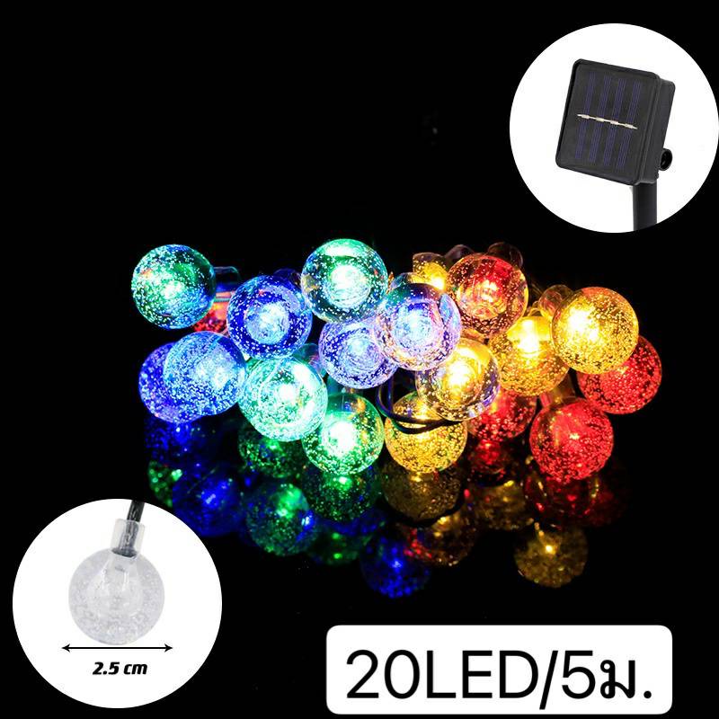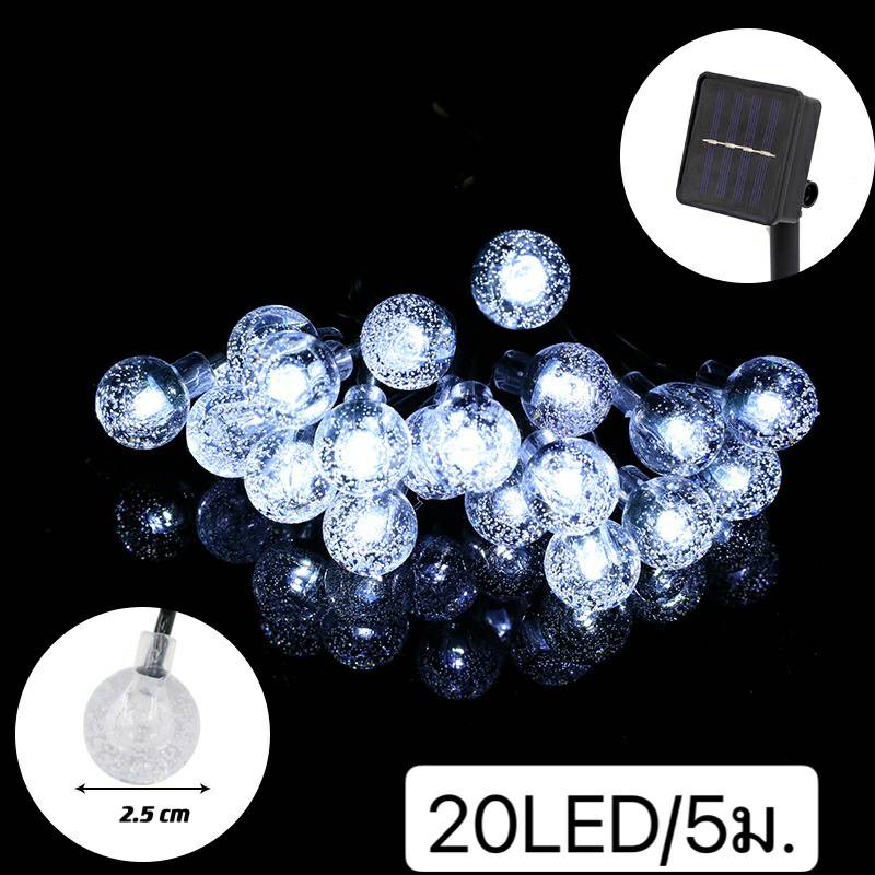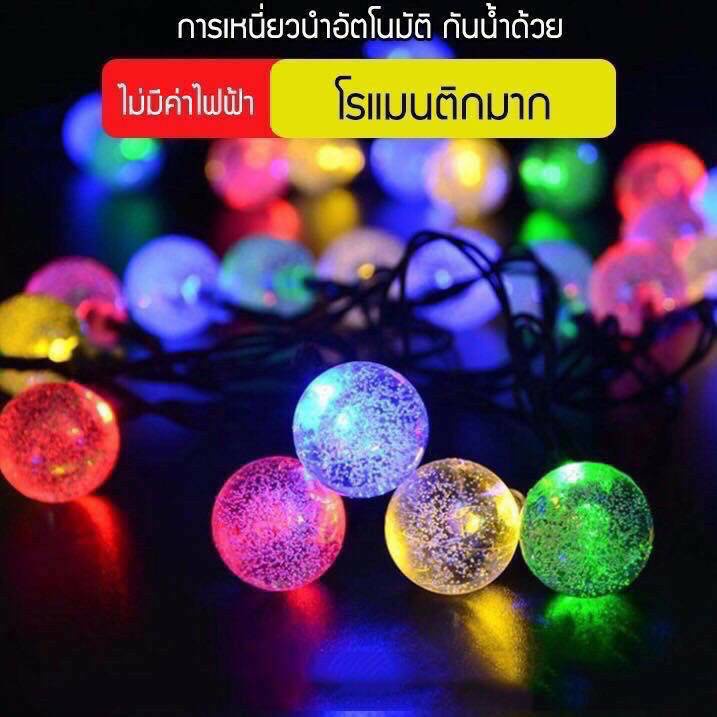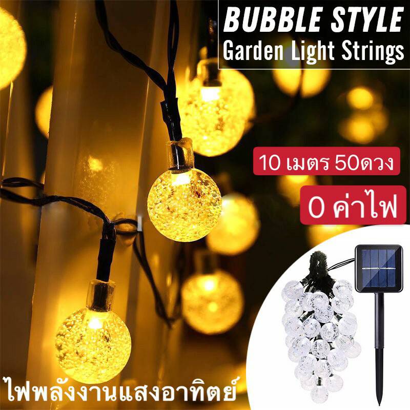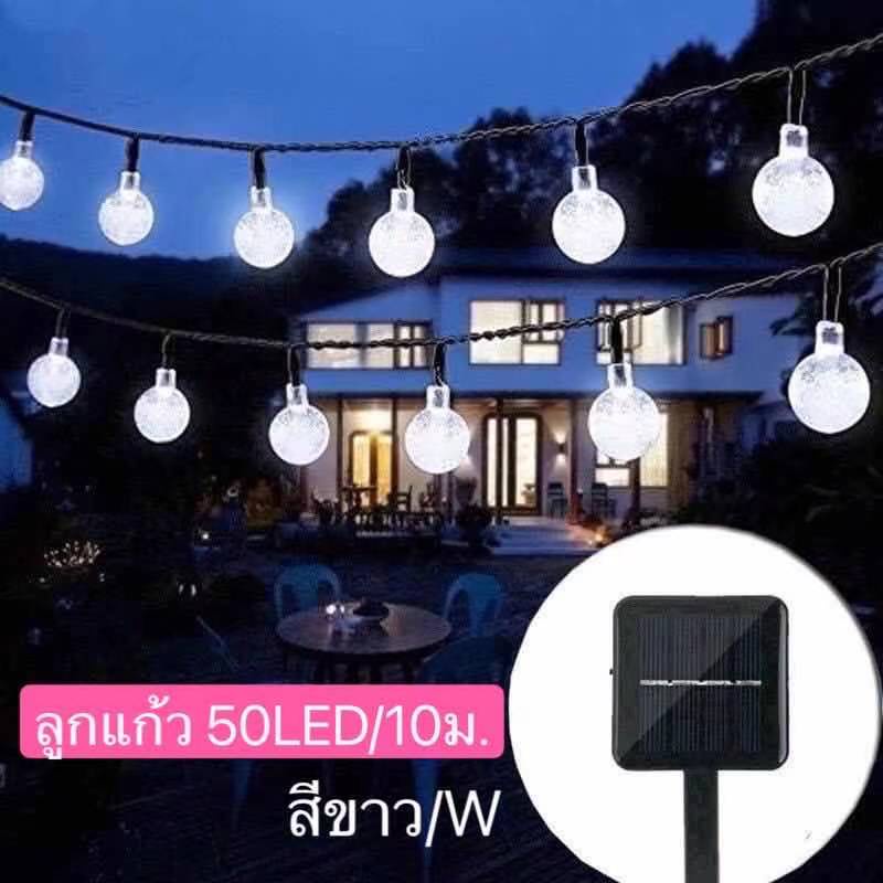 โซล่าเซลล์ ไฟตกแต่ง ไฟลูกแก้ว 50LED/10 ม. 8โหมด ไฟตกแต่งสวนและกลางแจ้ง