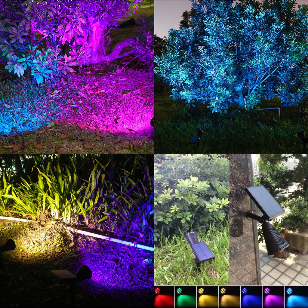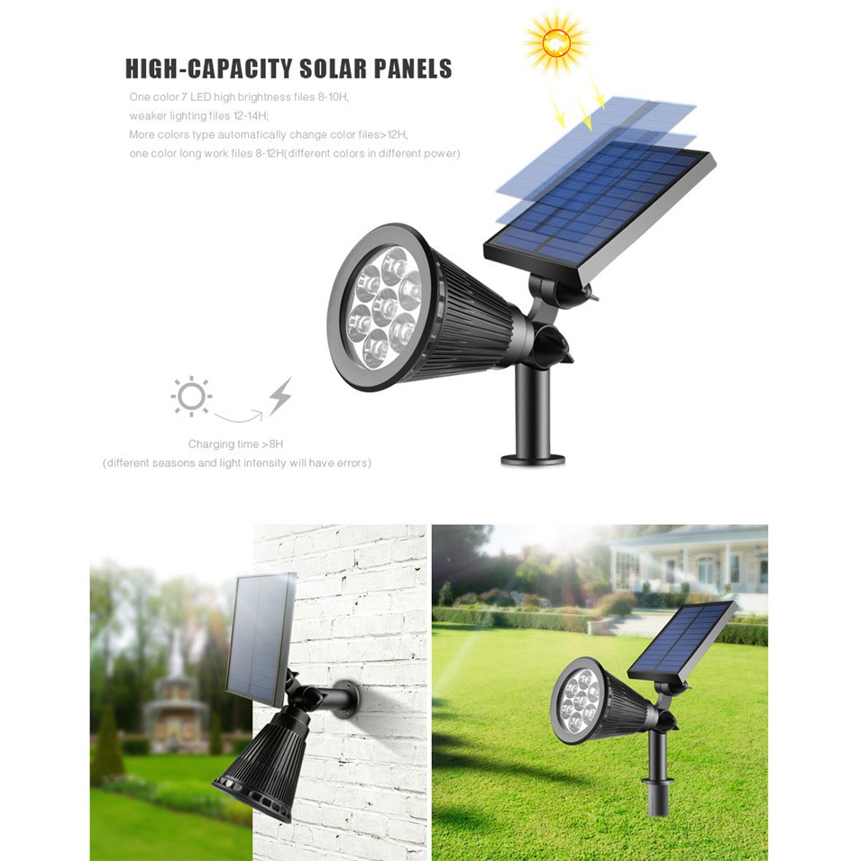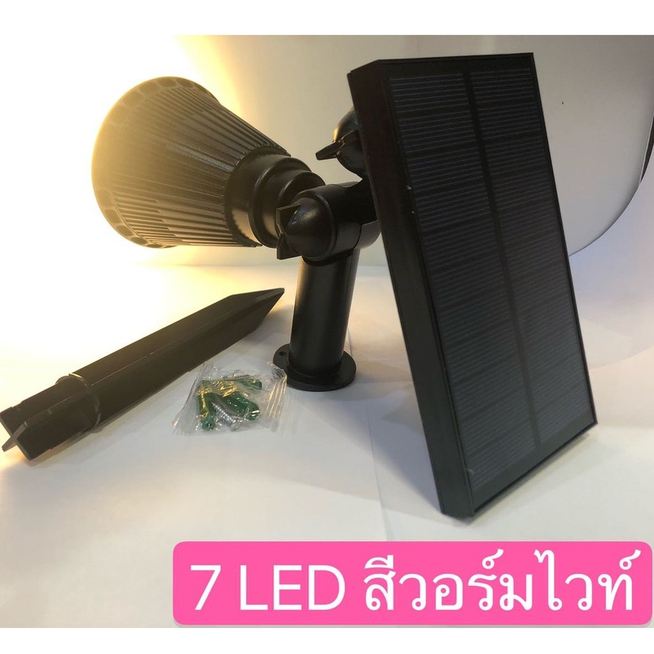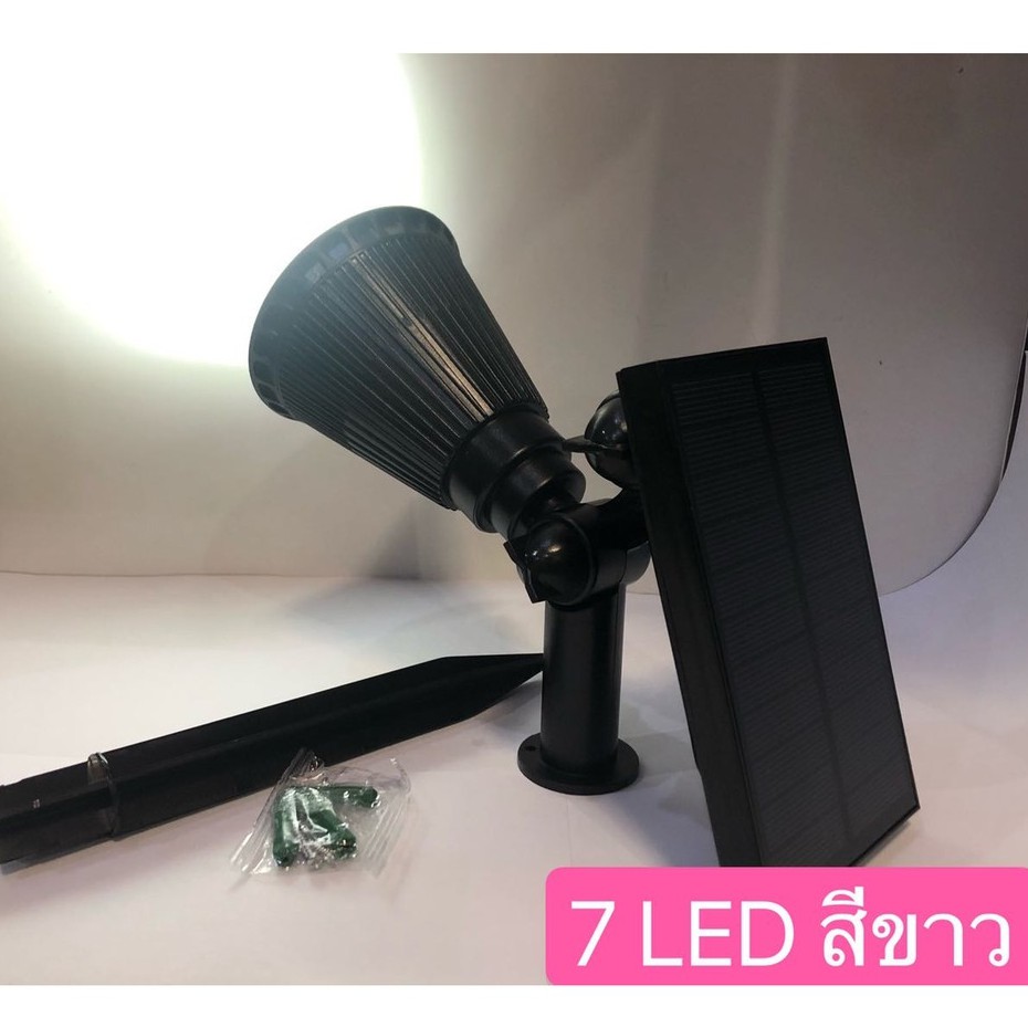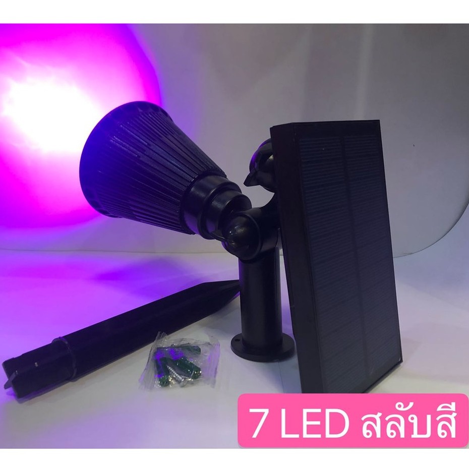 ไฟสนามโซล่าเซลล์ โคมไฟสนามหญ้า ไฟสนามพลังงานแสงอาทิตย์ สปอร์ตไลท์ LED 7 หลอด มี 3 สี