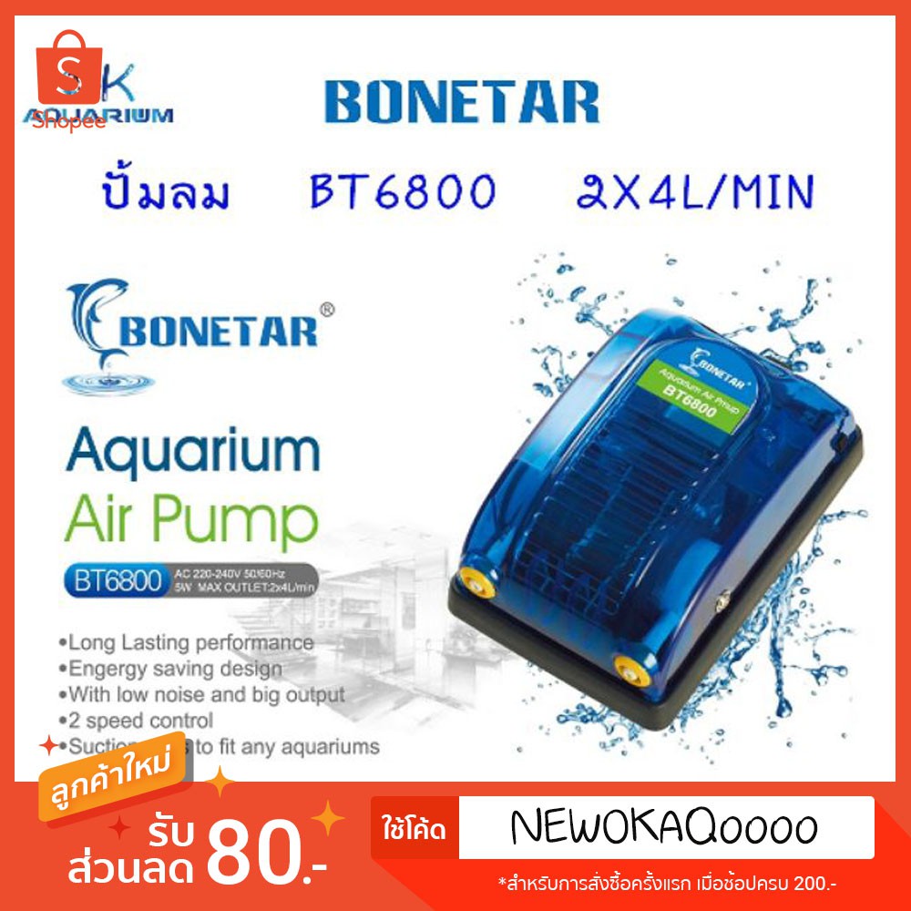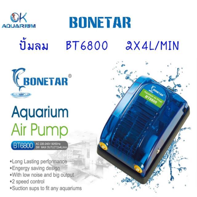 Bonetar ปั้มอ็อกซิเจน ปั๊มลม BT 6800 ปั๊มลม ตู้ปลา บ่อปลา ปั๊มลมตู้ปลาแบบ 2 ทาง #BT004_3