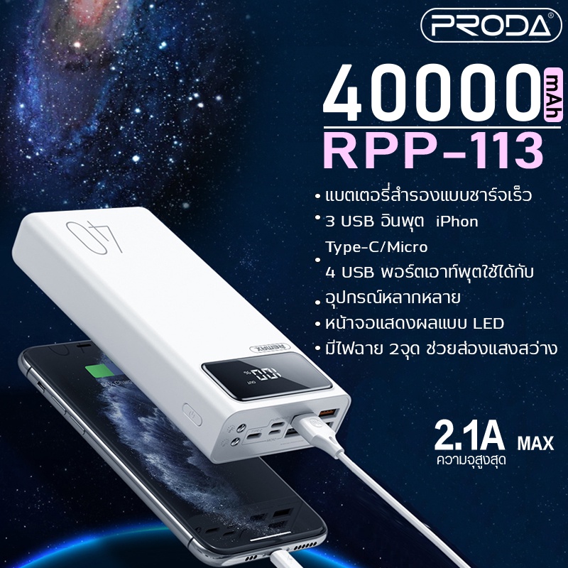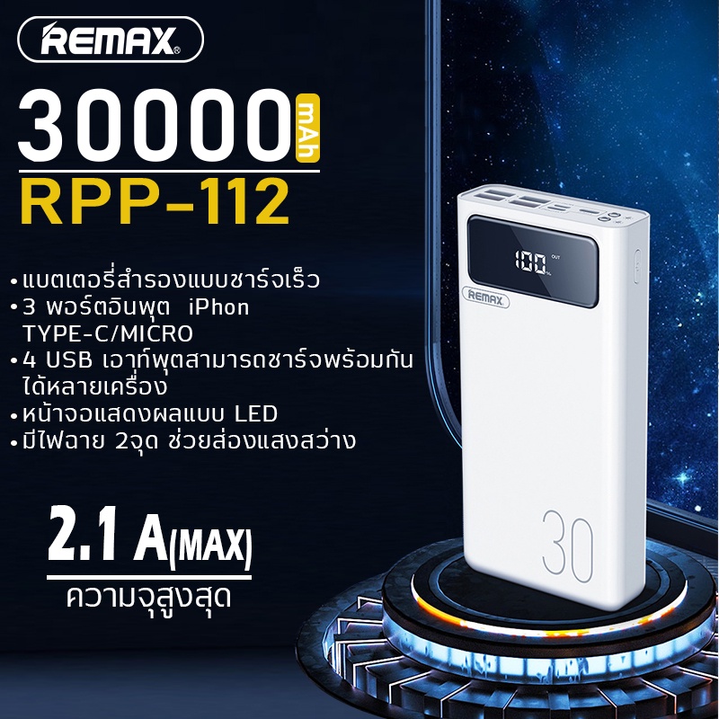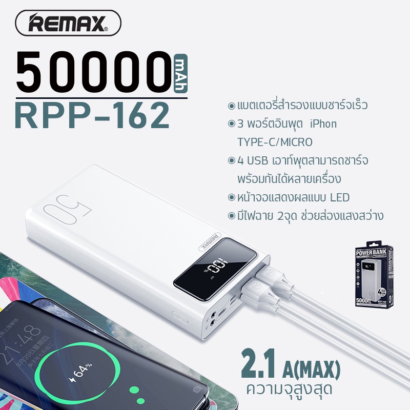 พาวเวอร์แบงค์ แบตสำรอง REMAX รุ่น RPP-112,RPP-113, RPP-162 ความจุแบต 30000/40000/50000 แบตเตอรี่ ชาร์จพร้อมกันได้ 4ช่อง