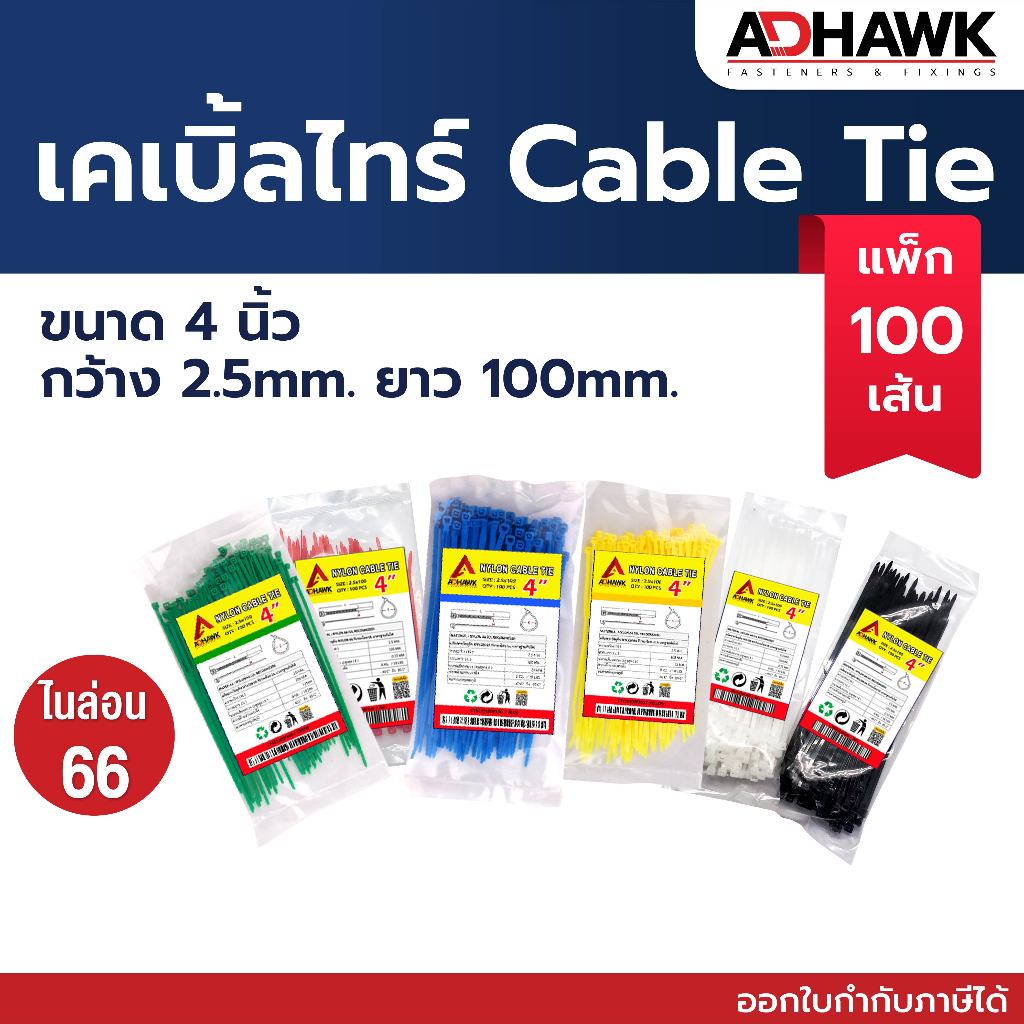 เคเบิ้ลไทร์ ไนล่อน Nylon66 งานไต้หวัน | 4/6/8 นิ้ว (100 เส้น)