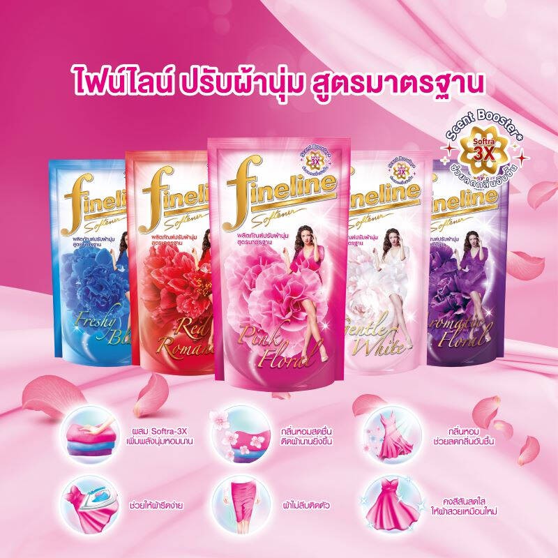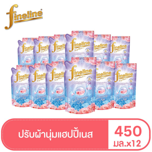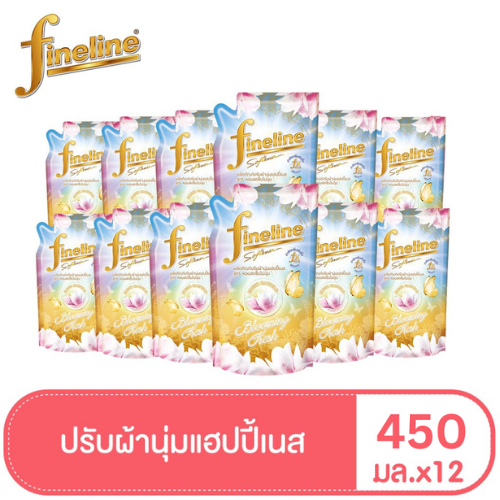 [ยกลัง] Fineline ไฟน์ไลน์ ผลิตภัณฑ์ปรับผ้านุ่ม แฮบปี้เนส ถุงเติม 450 มล.x12 (เลือกกลิ่นได้)