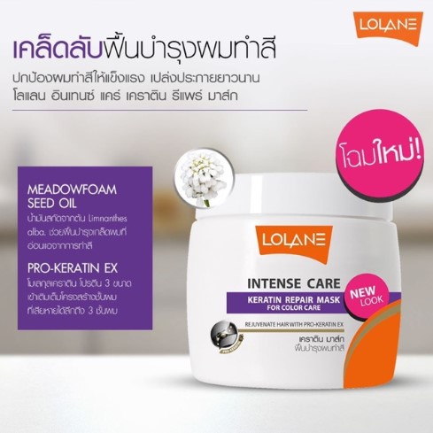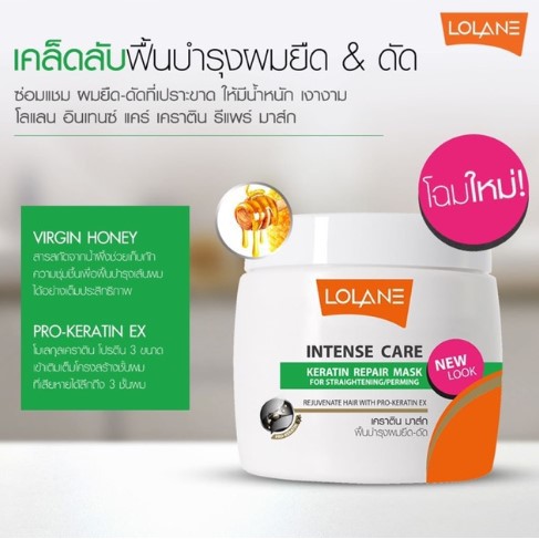 (โลแลน กป.ขาว) 200g.LOLANE INTENSE CARE KERATIN REPAIR MASK อินเทนซ์แคร์ เคราติน รีแพร์ มาส์ก ครีมนวดผม บำรุงผมเสีย