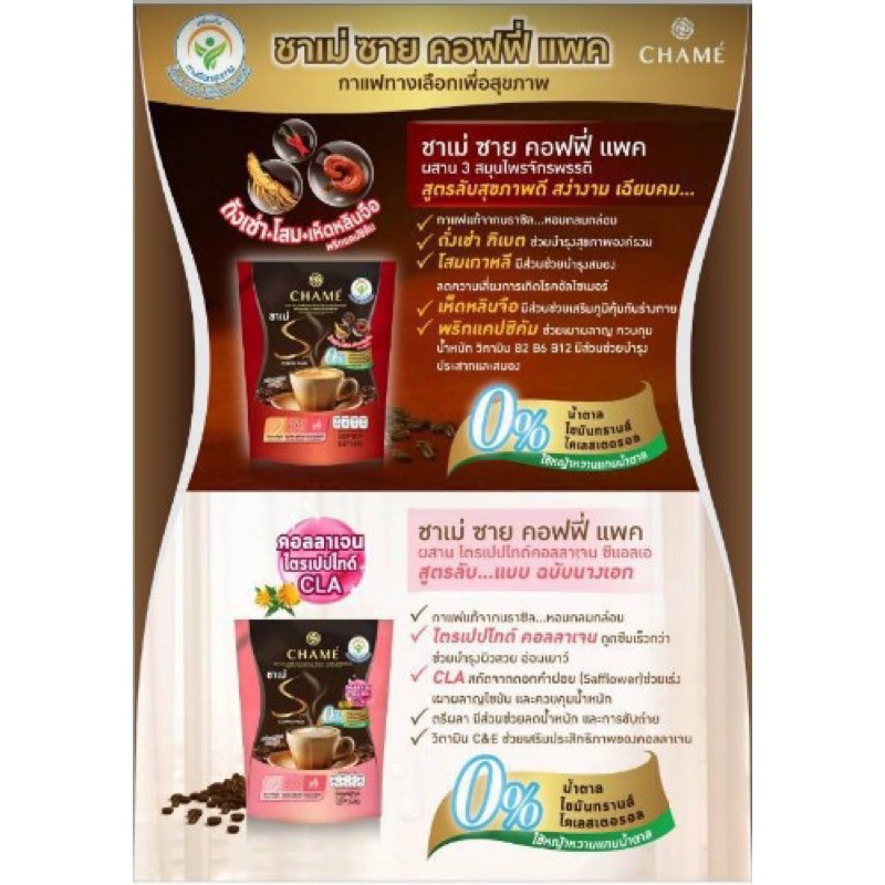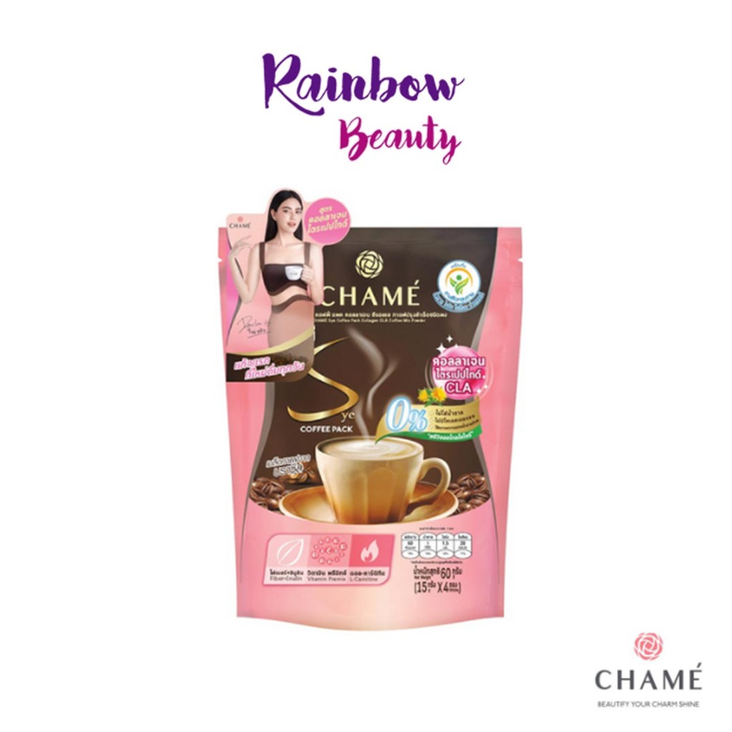 *ซื้อ1แถม1* EXP19/07/24 ห่อชมพู Chame ชาเม่ชาย คอฟฟี่แพ็ค คอลลาเจน ซีแอลเอ 15 กรัม ( 1 ห่อ / 10 ซอง ) ไม่ใส่น้ำตาล