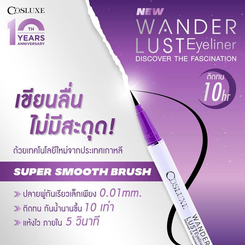 โฉมใหม่!! COSLUXE Wanderlust Eyeliner อายไลน์เนอร์ ตัวท้อป ของ คอสลุคส์ 0.55 มล. สีดำสนิท แห้งไว ติดทน กรีดตา