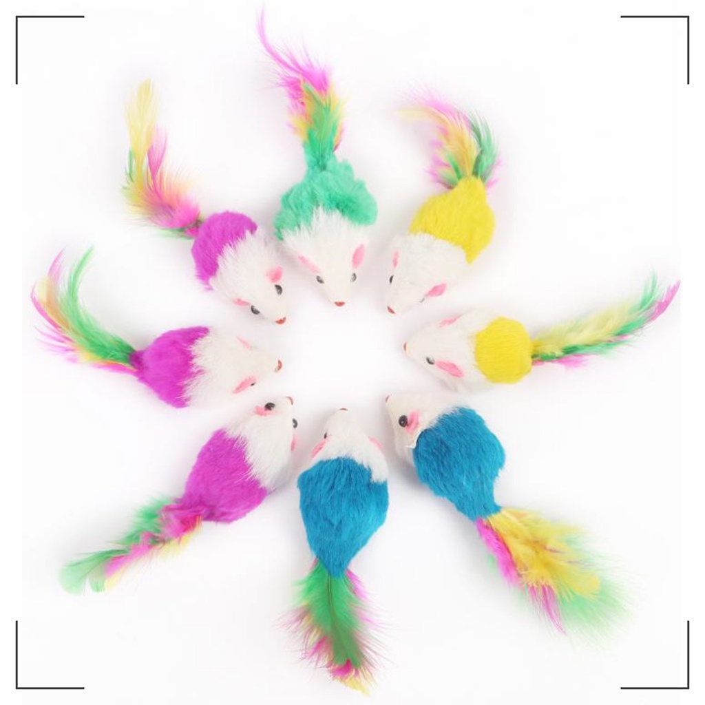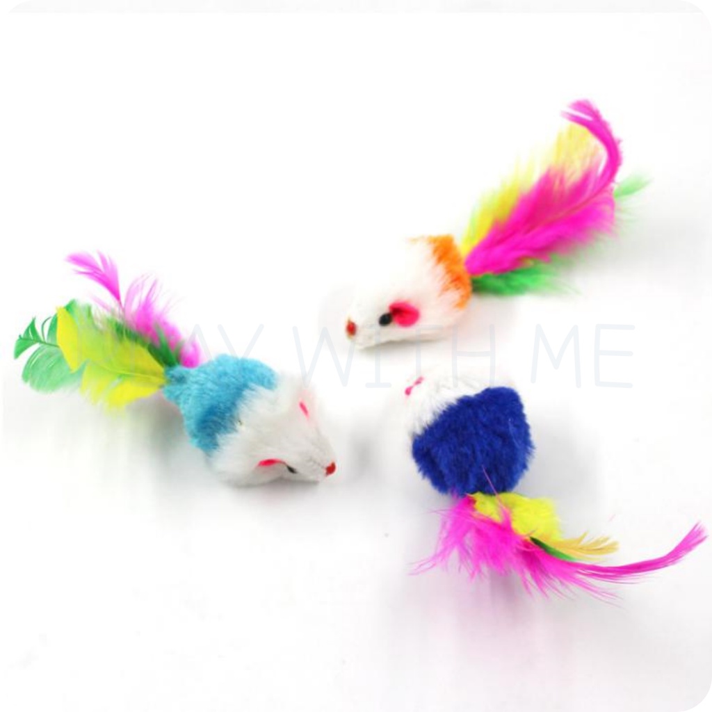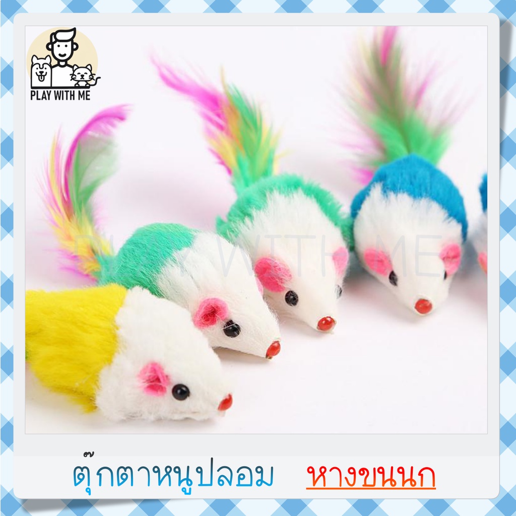 ✅พร้อมส่ง✅ หนูปลอมหางขนนก หนูป่่วน ขนนุ่มนิ่ม ตุ๊กตาหนู ของเล่นแมว