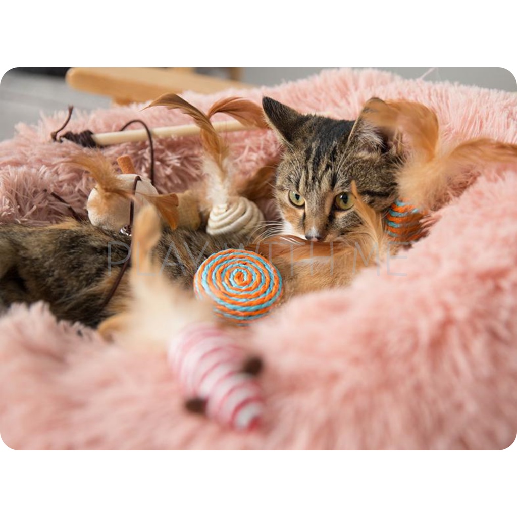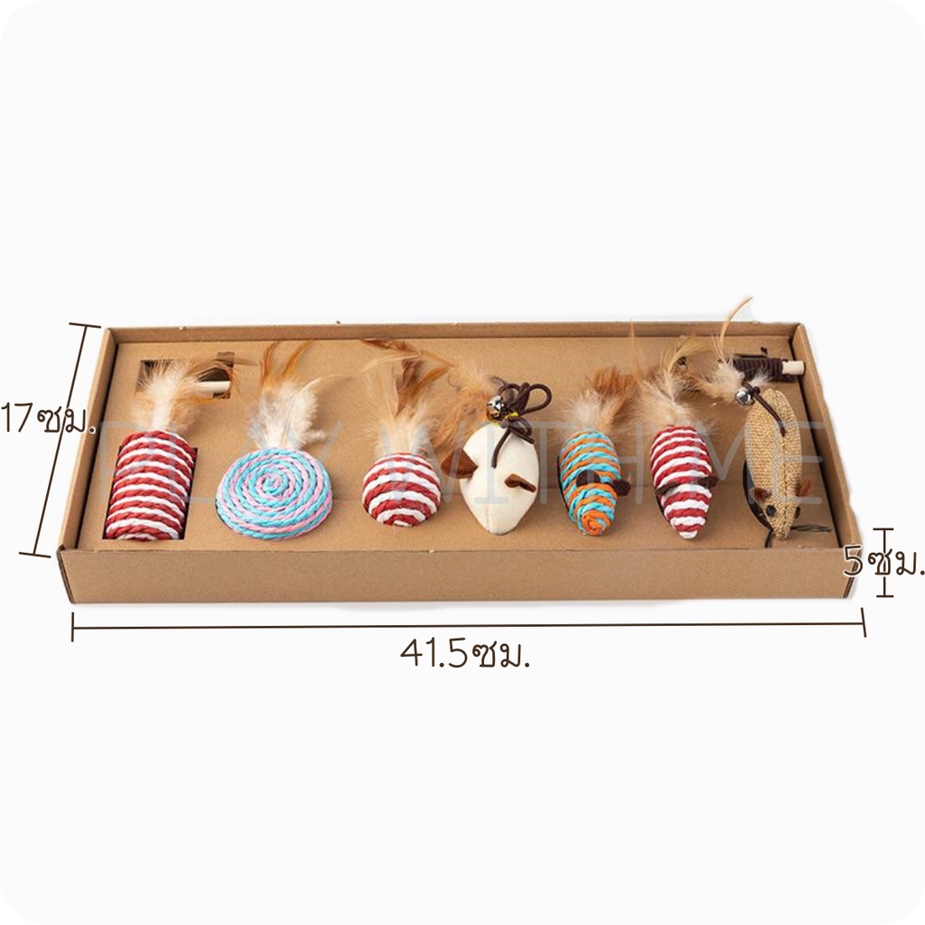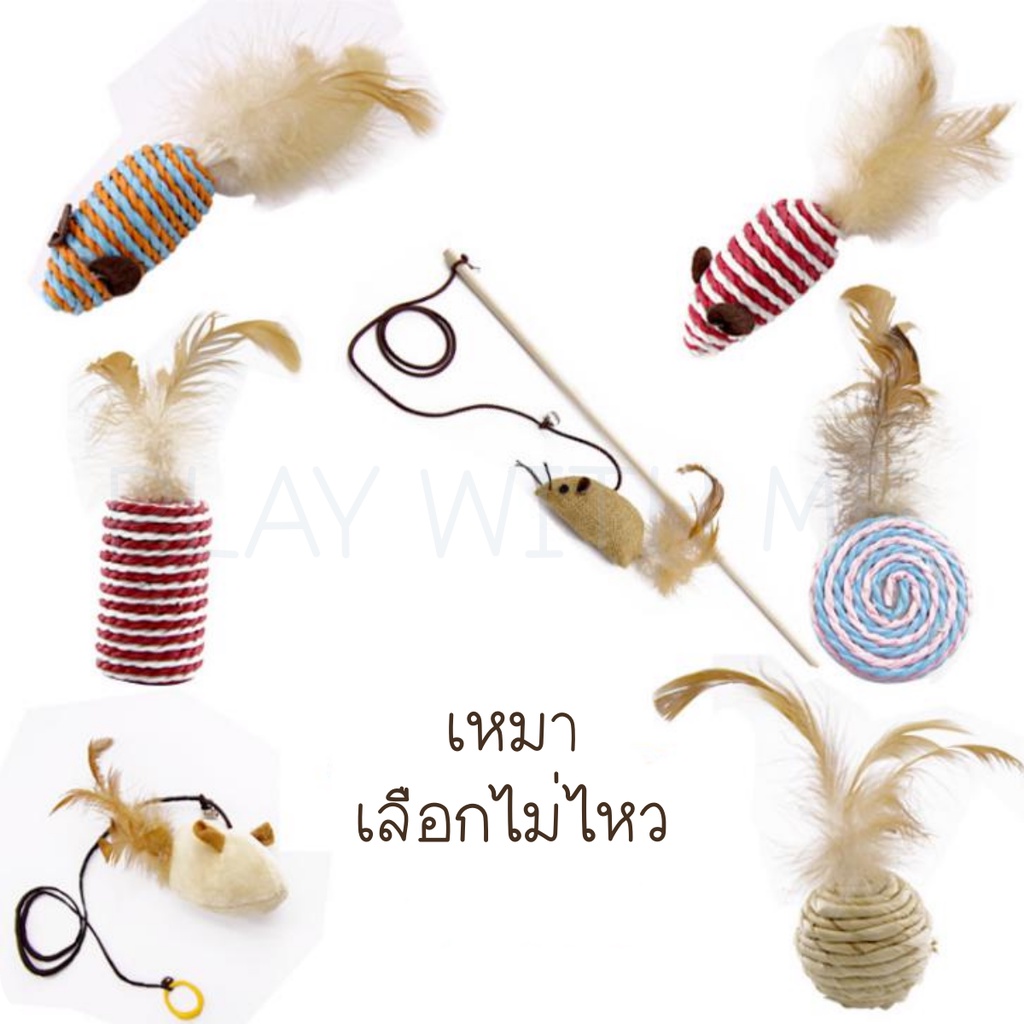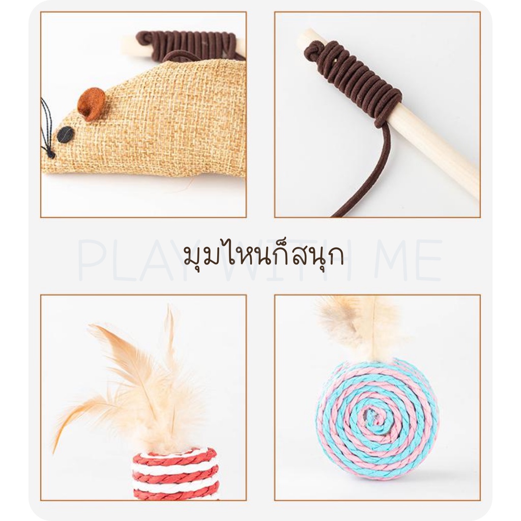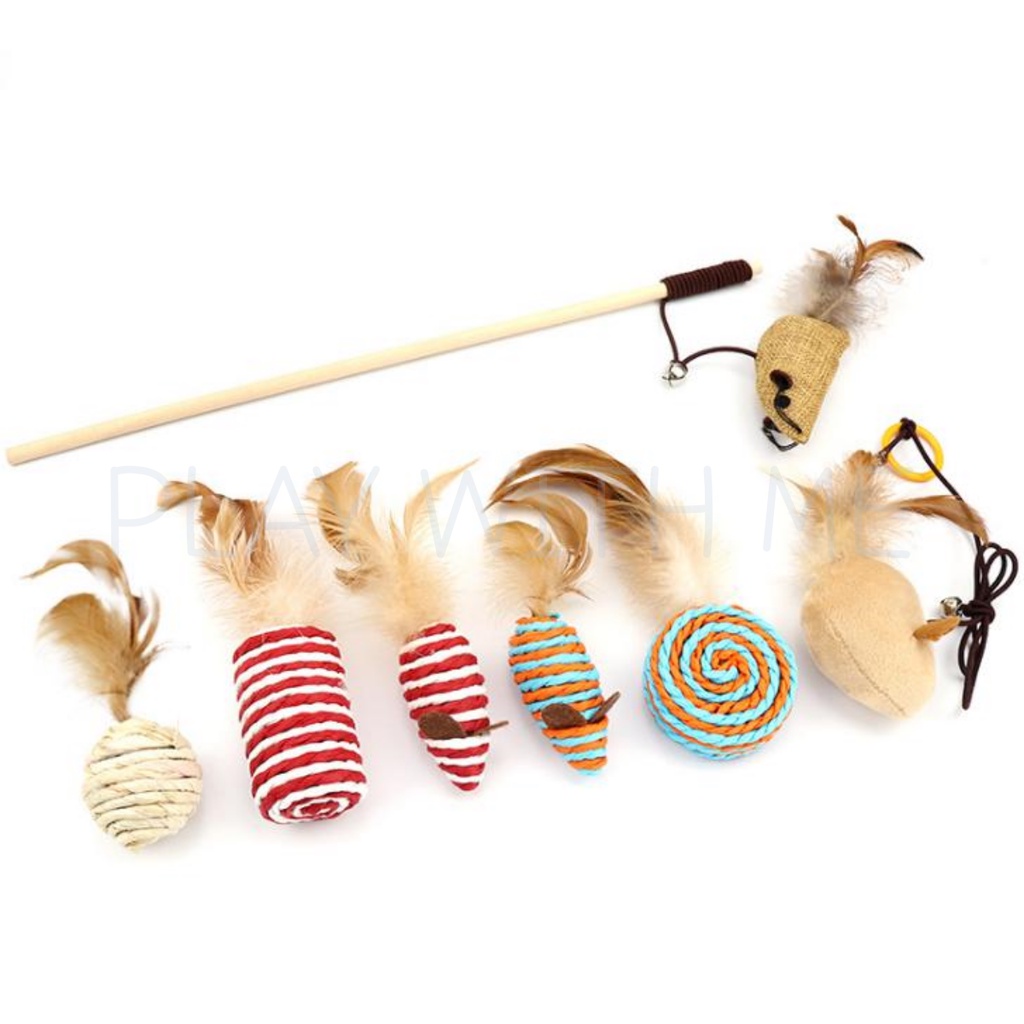 ✅พร้อมส่ง✅ ไม้ล่อแมว กล่องเซ็ต 7ชิ้น เปลี่ยนหัวได้ ของเล่นหัวขนไก่ ไม้ตกแมว ตุ๊กตาหนู หนูปลอม บอลเชือก ของเล่นแมว