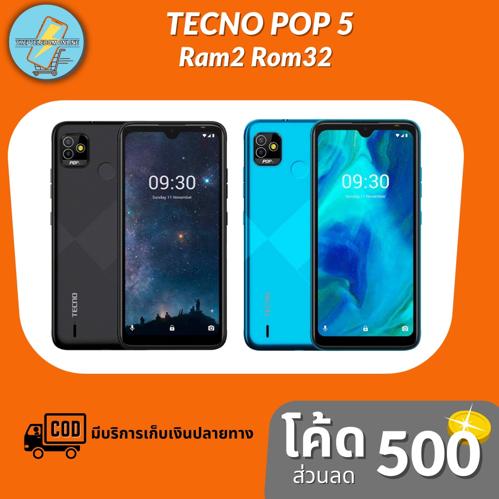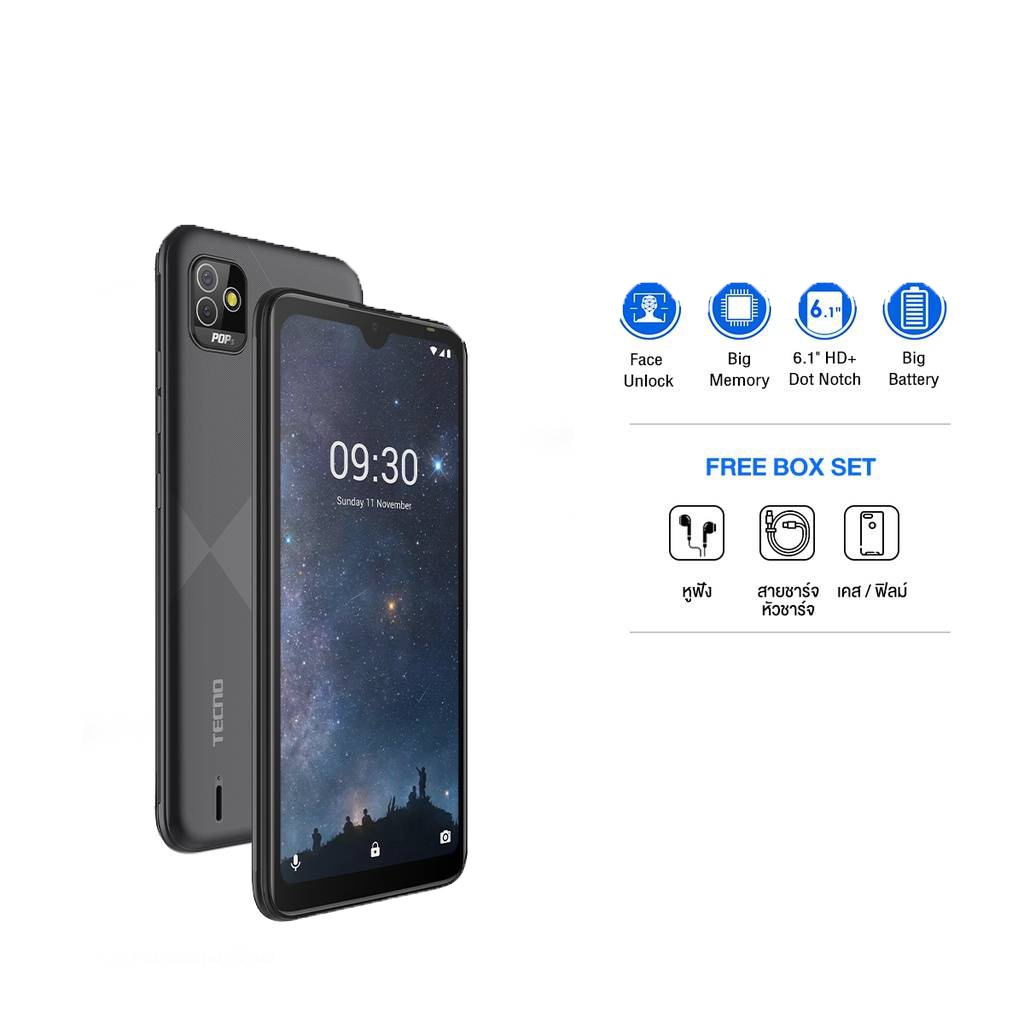 TECNO POP5 2/32GB มือถือสมาร์ทโฟน จอ6นิ้ว HD+ แบตเตอรี่ 5,000 mAh | ประกันศูนย์ไทย 1 ปี