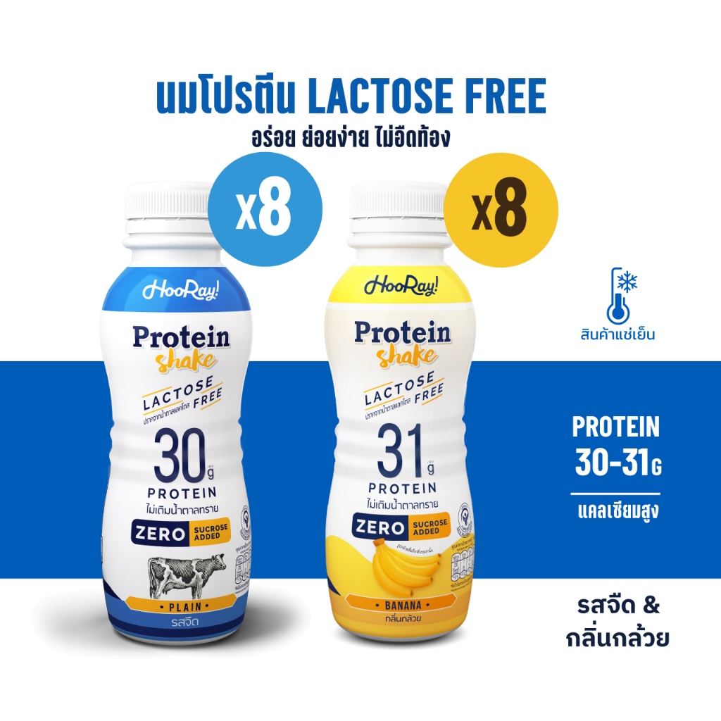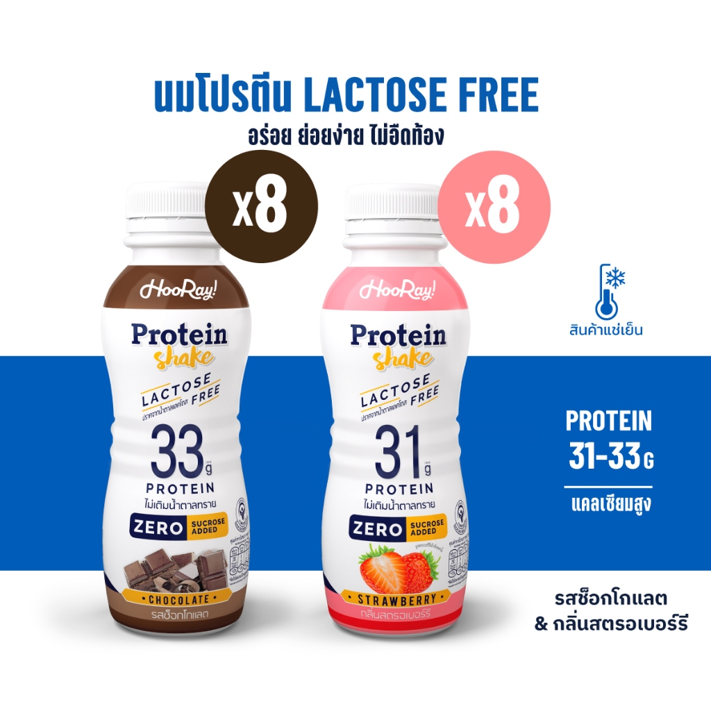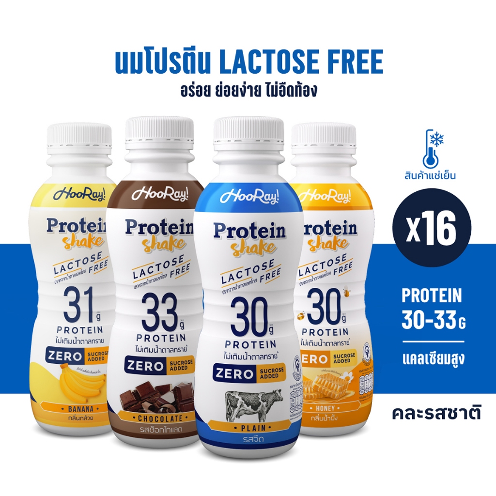 Hooray! Protein Shake Lactose Free นมโปรตีนสูตรเวย์ Pack 16 ขวด รอบส่งวันที่ 15-17 [BBF01/01/2026]