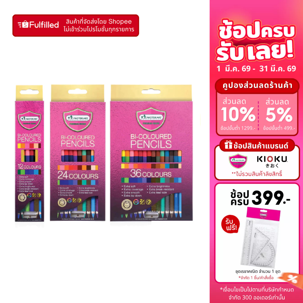 Master Art มาสเตอร์อาร์ต สีไม้ ดินสอสี ชนิด 2 หัว 12-36 สี