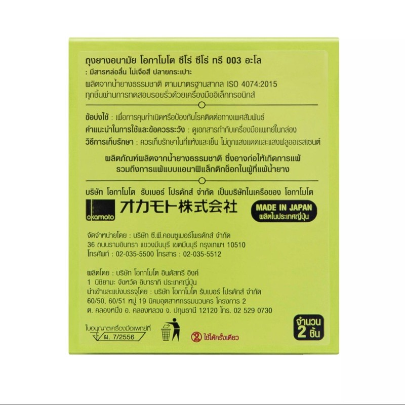 ถุงยางอนามัยโอกาโมโต 003อะโล ขนาด 52มม. (2ชิ้น) Okamoto 003aloe Condom 1กล่อง