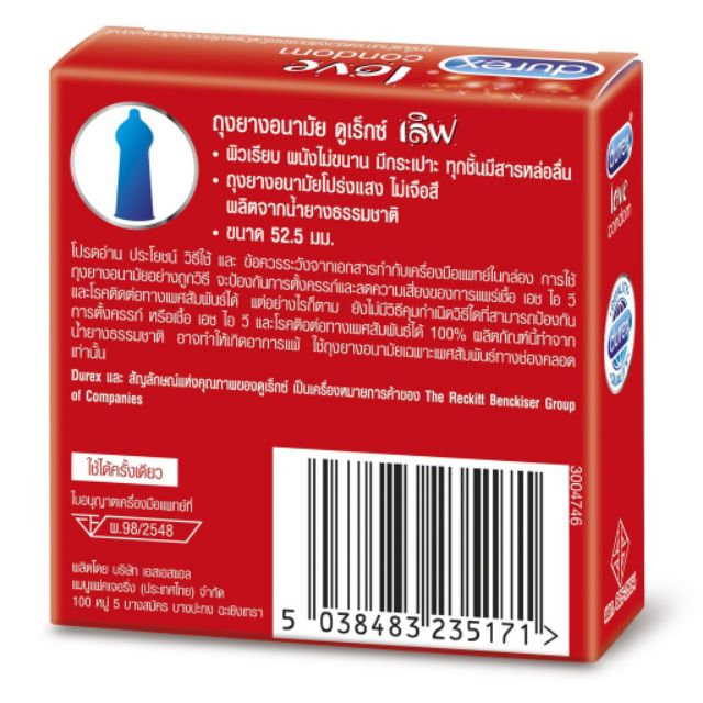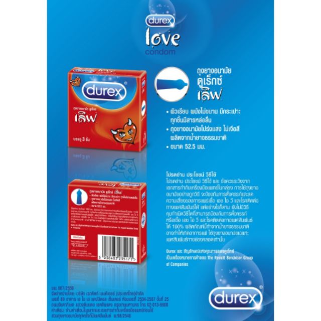 ถุงยางอนามัยดูเร็กซ์ เลิฟ (3ชิ้น) Durex Love Comdom ขนาด 52.5มม.
