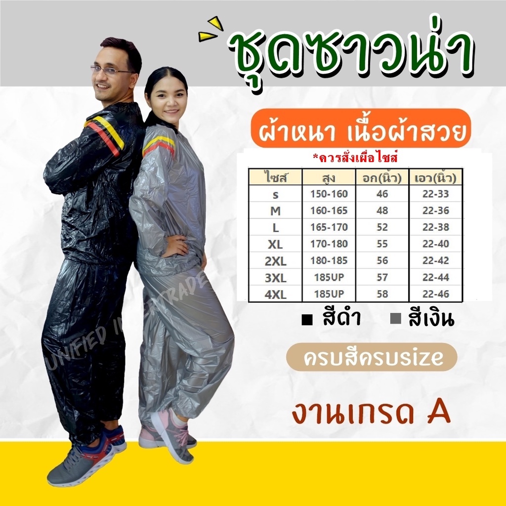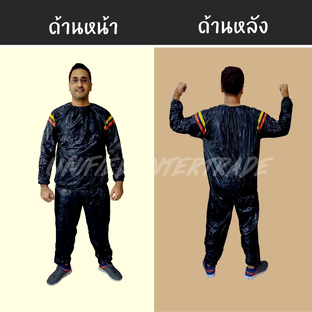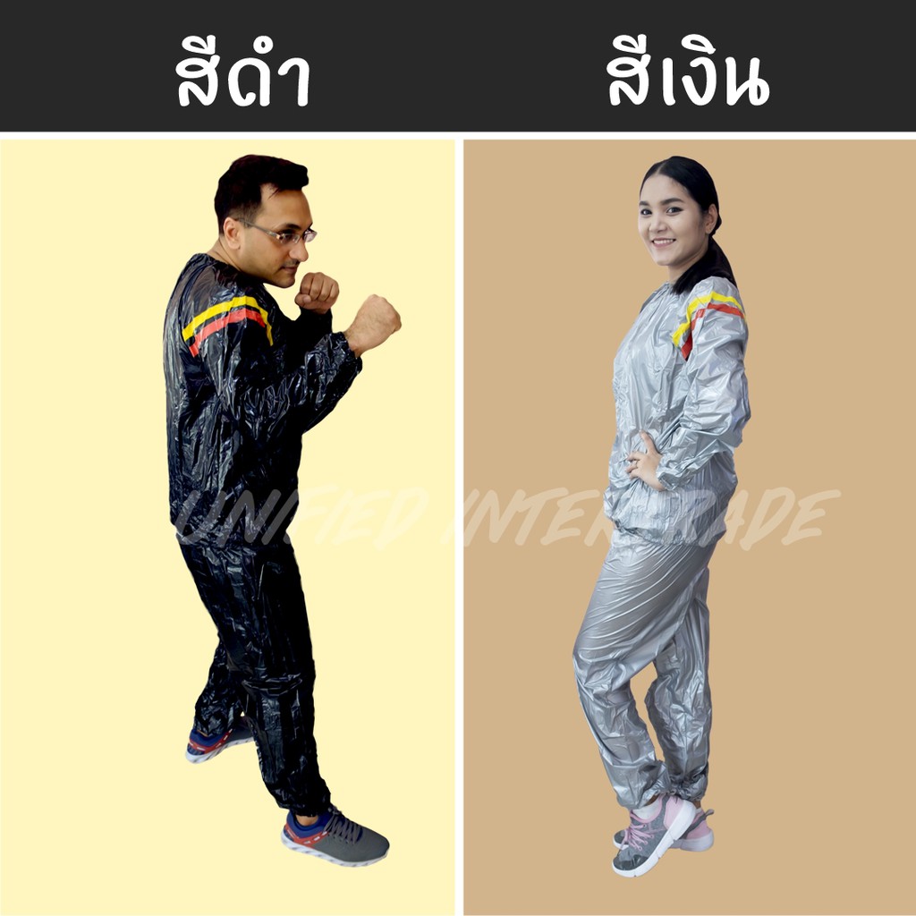 ชุดซาวน่าสวมใส่ตอนออกกำกายเพื่อเพิ่มการเผาผลาญ ช่วยในการขับเหงื่อ ชุด Sauna suit ดำและเงิน