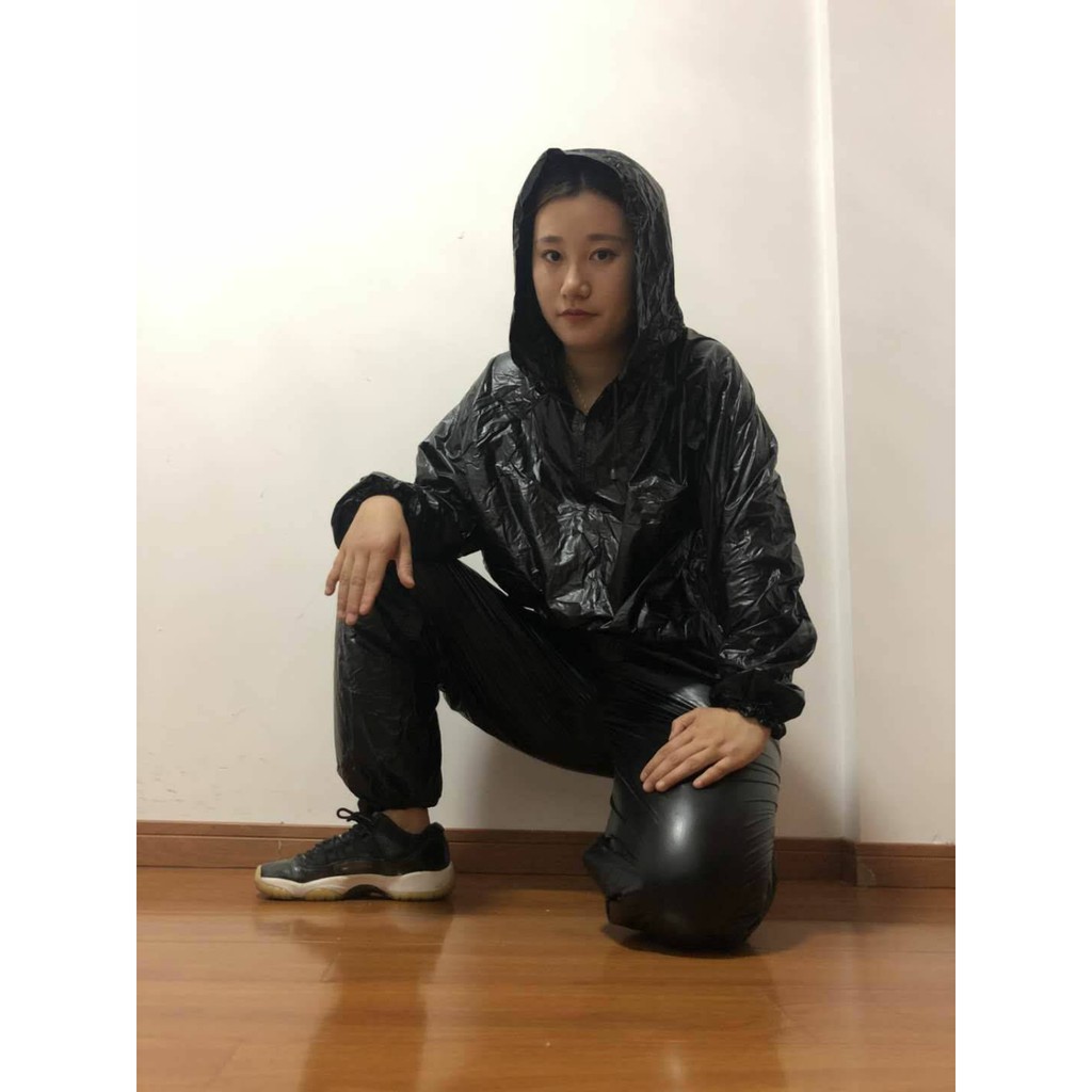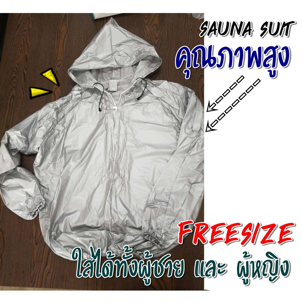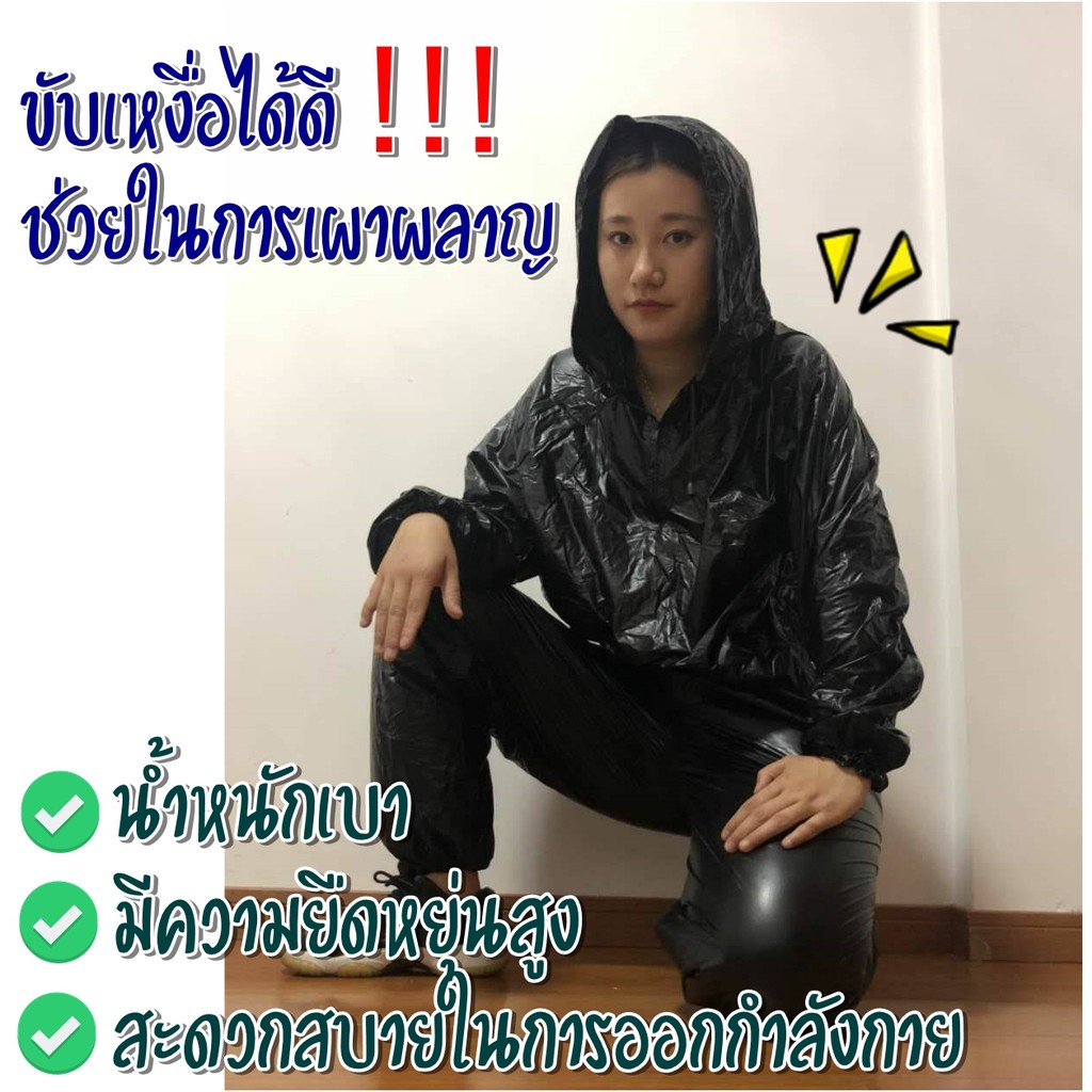 ชุดซาวน่าแบบหมวก FREE SIZE สวมใส่ตอนออกกำกายเพื่อเพิ่มการเผาผลาญ ช่วยในการขับเหงื่อ ชุด Sauna suit ดำและเงิน
