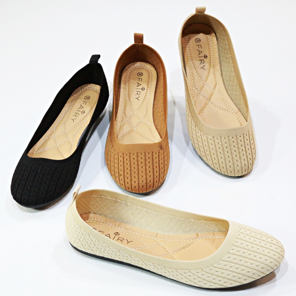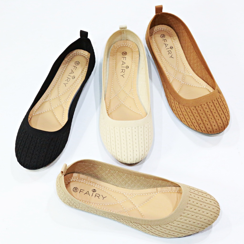 รองเท้าส้นแบน 999-60 รองเท้าส้นแบนถัก FAIRY