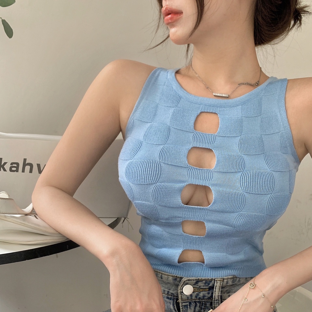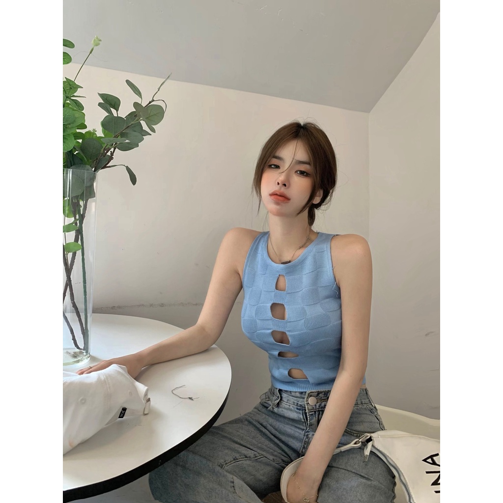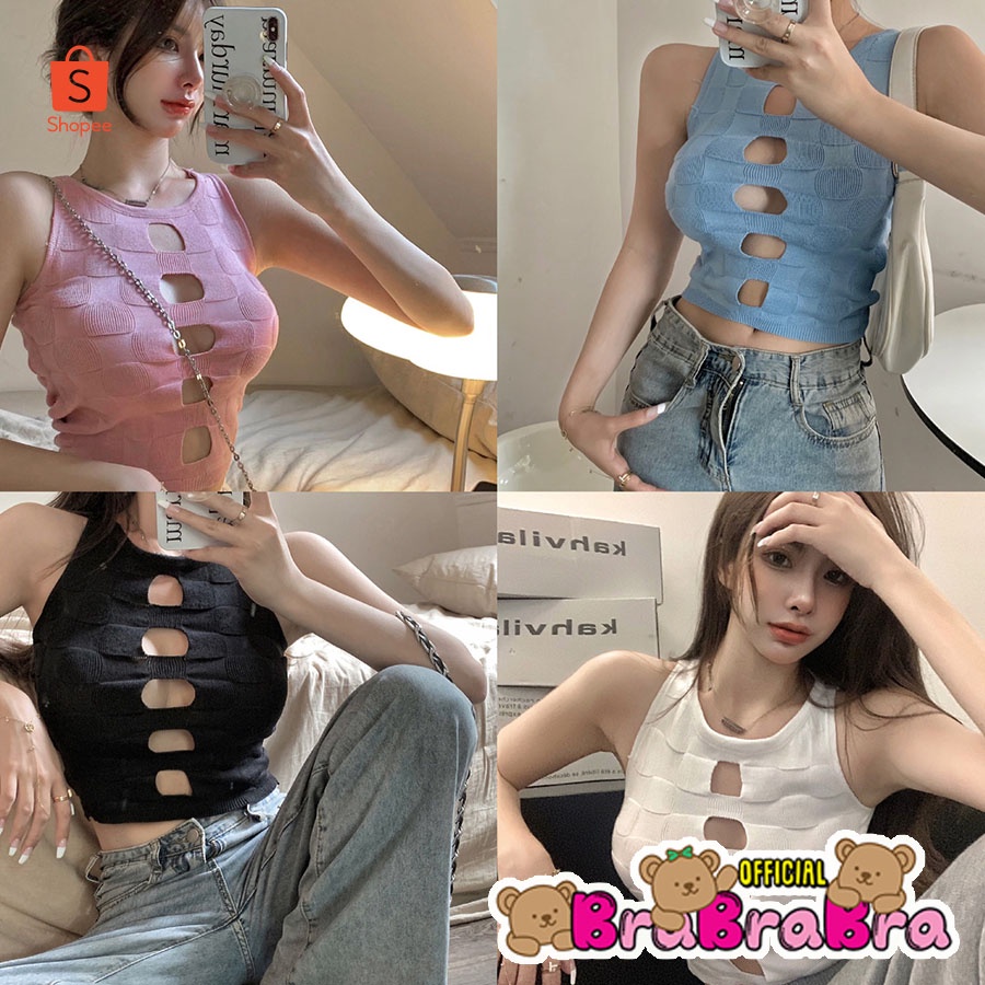 [ส่งจากไทย] 𝑩𝒓𝒂𝑩𝒓𝒂𝑩𝒓𝒂 #f-112 เสื้อ แขนกุด ไหมพรม เว้าช่วงอก ผ้านุ่มยืดได้