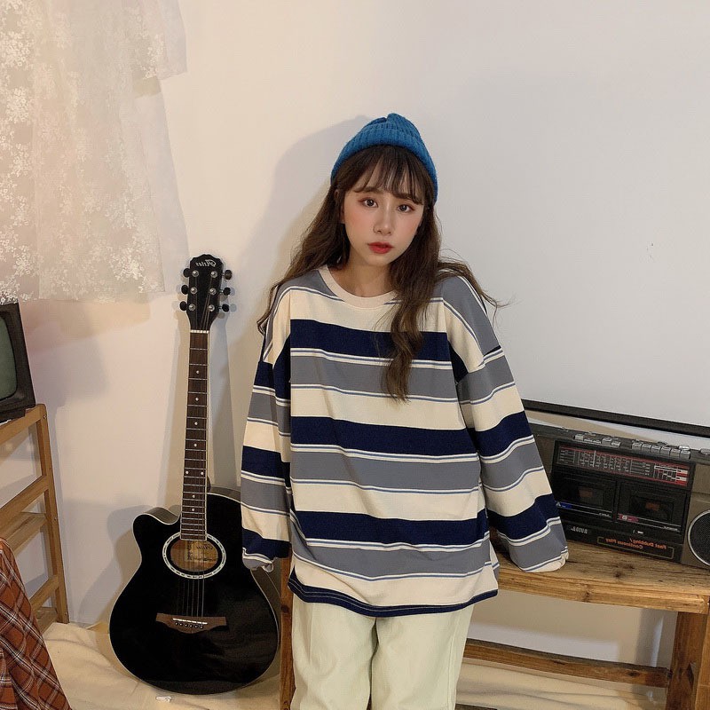 [ส่งจากไทย] 𝑩𝒓𝒂𝑩𝒓𝒂𝑩𝒓𝒂 #f-042 เสื้อ แขนยาว ลายทาง กันหนาว ผ้าหนา
