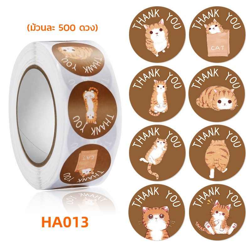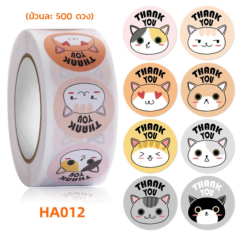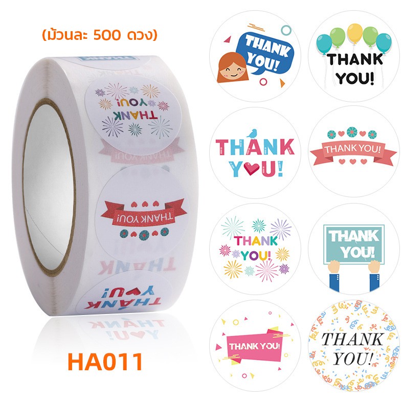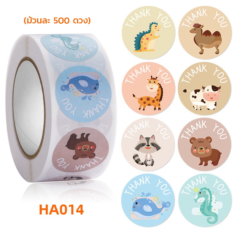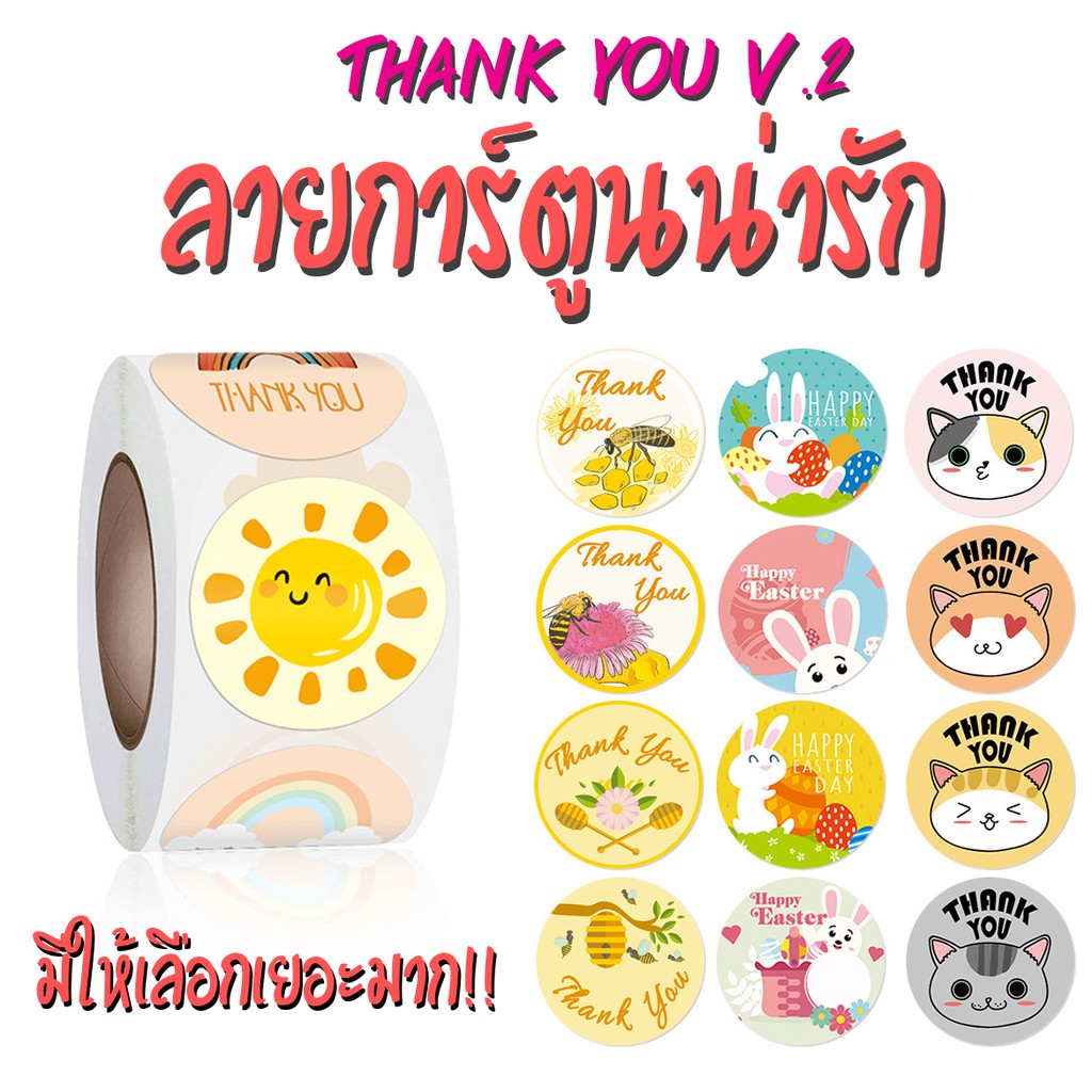 สติ๊กเกอร์ขอบคุณ ลายการ์ตูนน่ารัก [ม้วนละ 500 ดวง] Thankyou Sticker