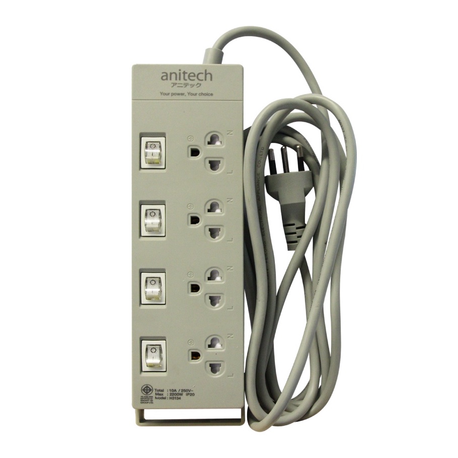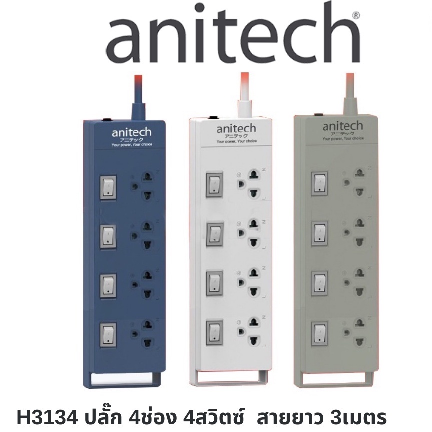 ANITECH Plug ปลั๊ก มอก 3เมตร / 5เมตร ป้องกันไฟกระชาก ปลั๊กไฟ USB รางปลั๊กไฟ ปลั๊กพ่วง รุ่น H3134 H5234 H5254