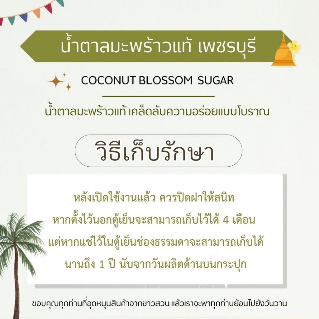 น้ำตาลมะพร้าวแท้เพชรบุรี ออแกร์นิค (500 กรัม) ไม่ผสมน้ำตาลทราย มะพร้าว น้ำหอม