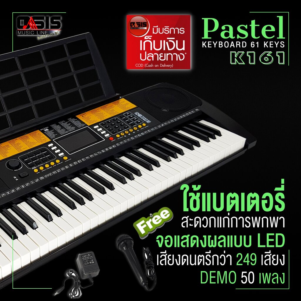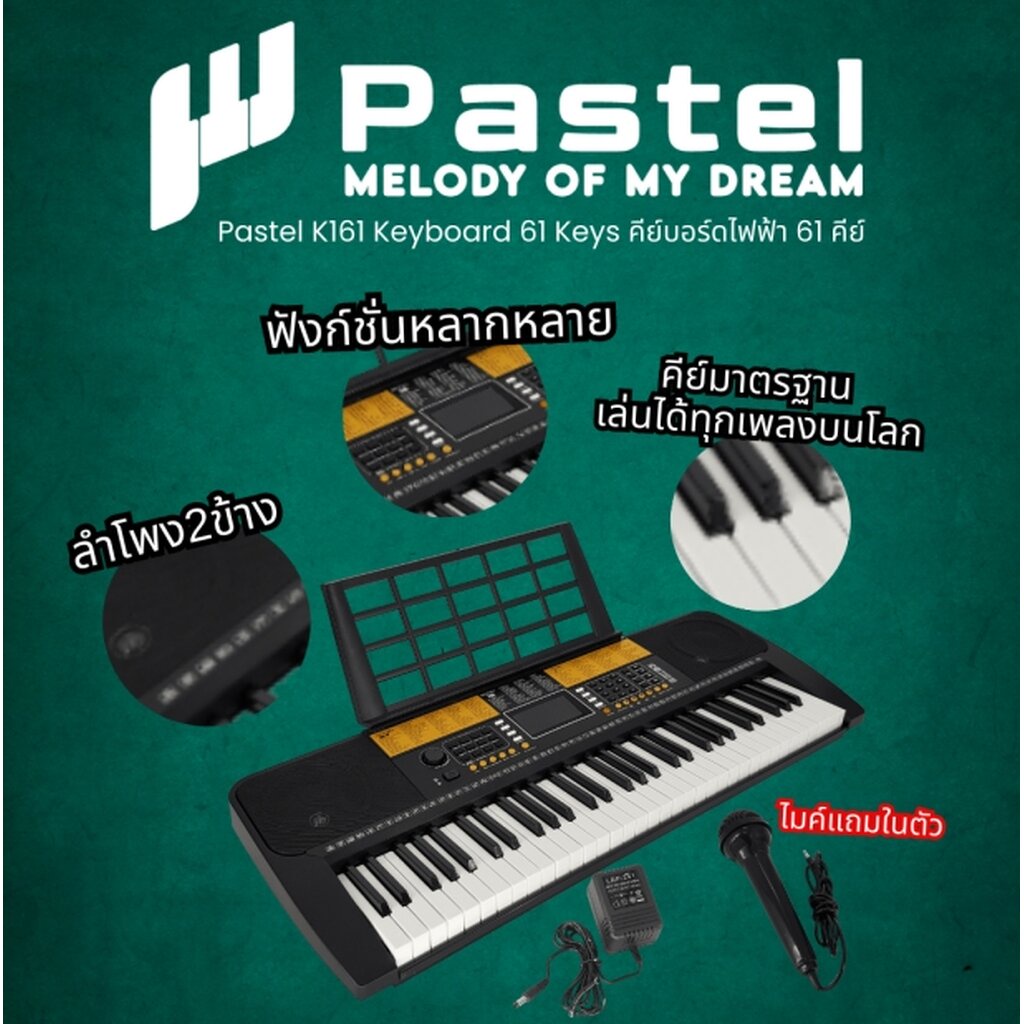 [ประกัน 1ปี] คีย์บอร์ดไฟฟ้า 61 คีย์ Pastel K-161 (Option ขาตั้ง เก้าอี้) Pastel K161 Keyboard 61 Keys คีย์บอร์ดไฟฟ้า ...