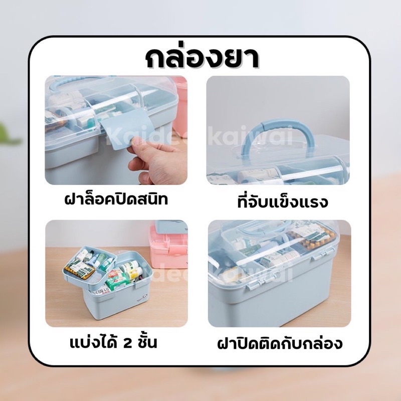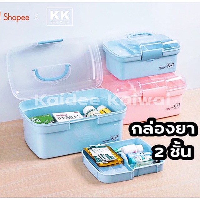 กล่องเก็บของ 2 ชั้น ถอดออกได้ ใสชุดปฐมพยาบาลได้ มีตัวล็อก กันความชื้น กันน้ำ จุได้เยอะ น้ำหนักเบา