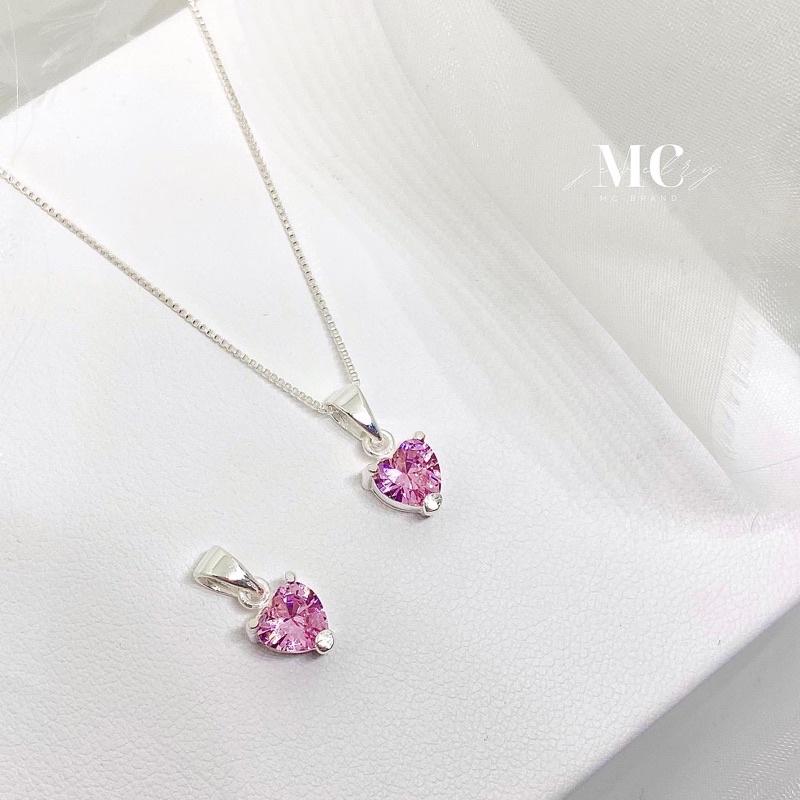 MCbrand.Jew🤍 สร้อยคอเงินเเท้92.5%จี้หัวใจเพชรCZขนาด 7 mm💖🤍White&Pink Hearts สุดน่ารัก💝💎มีใบรับประกันสินค้า💎