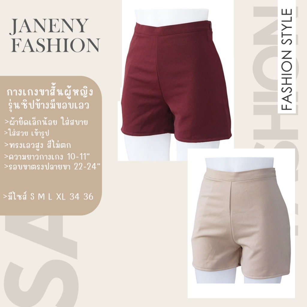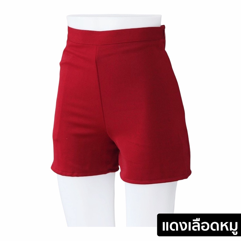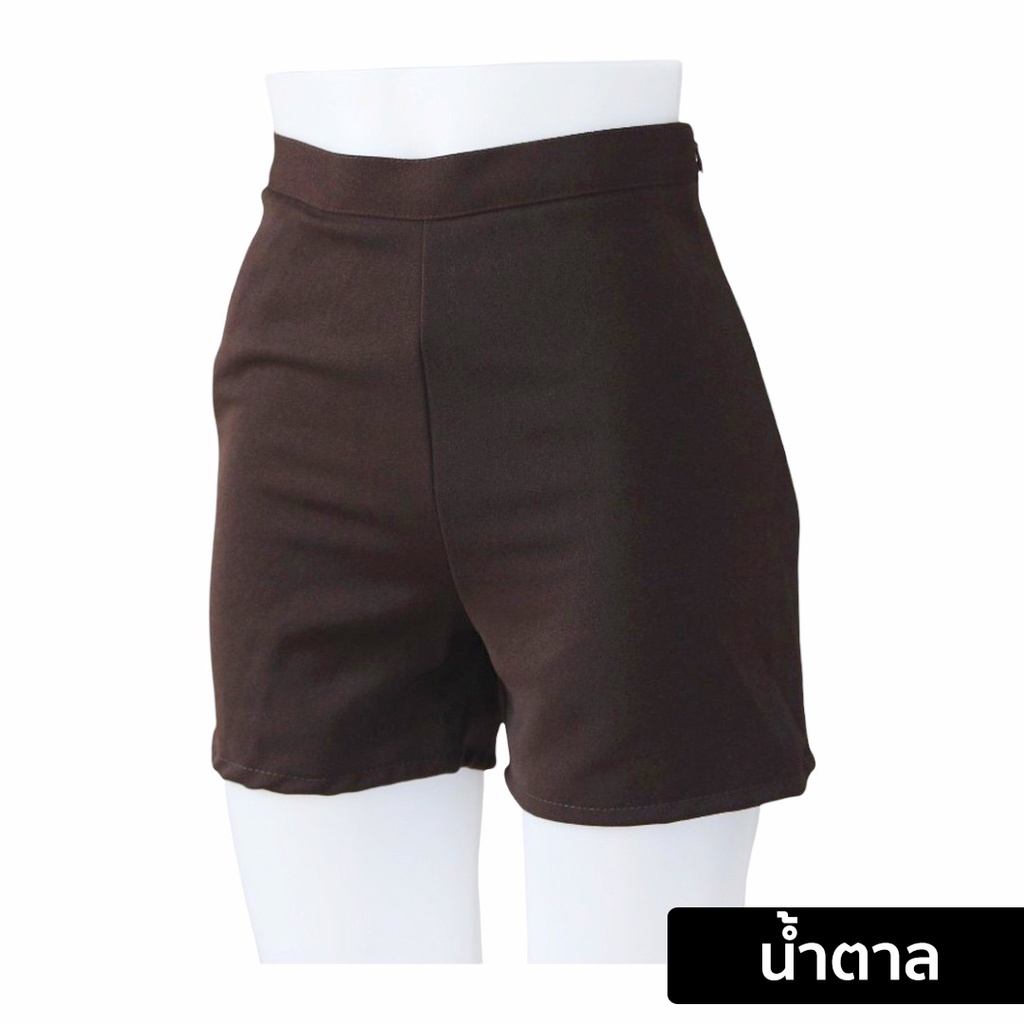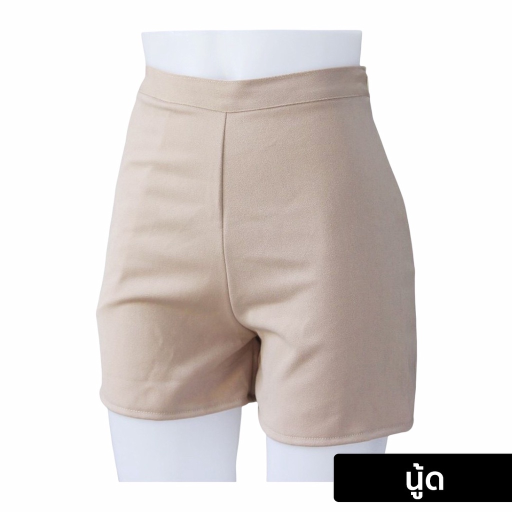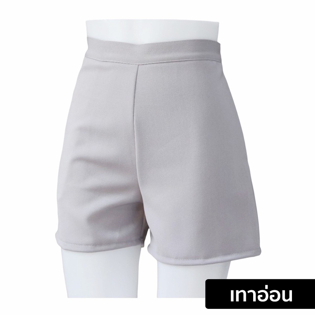 กางเกงขาสั้นผู้หญิง ทรงสวยใส่สบาย ทรงเอวสูง รุ่นมีขอบเอวซิปข้างซ้ายกระเป๋าข้างขวา