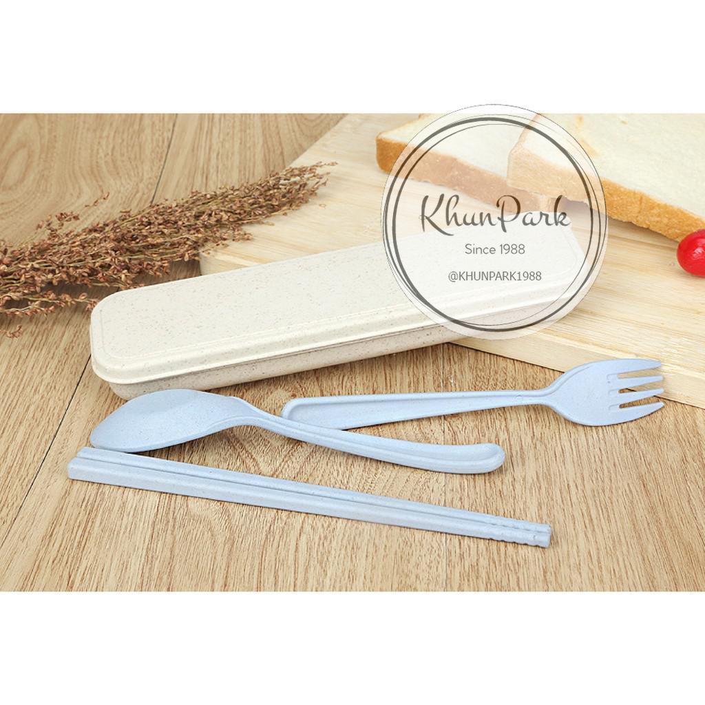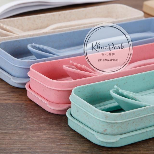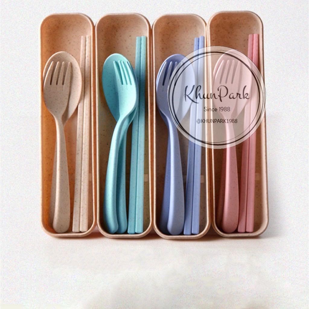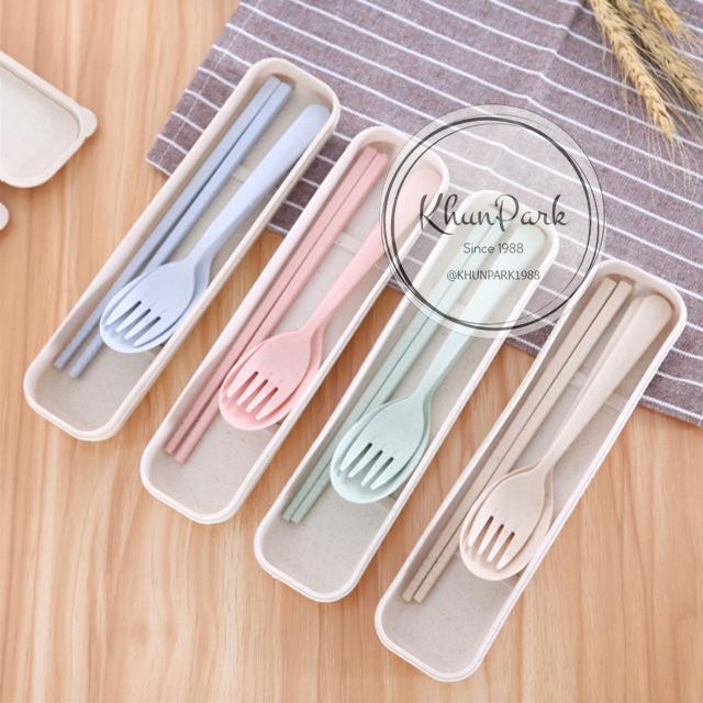 ชุดช้อนส้อม+ตะเกียบ พร้อมกล่อง ใส่ขนาดพกพา แบบพกพา มี 4 สีให้เลือก A67 kp99