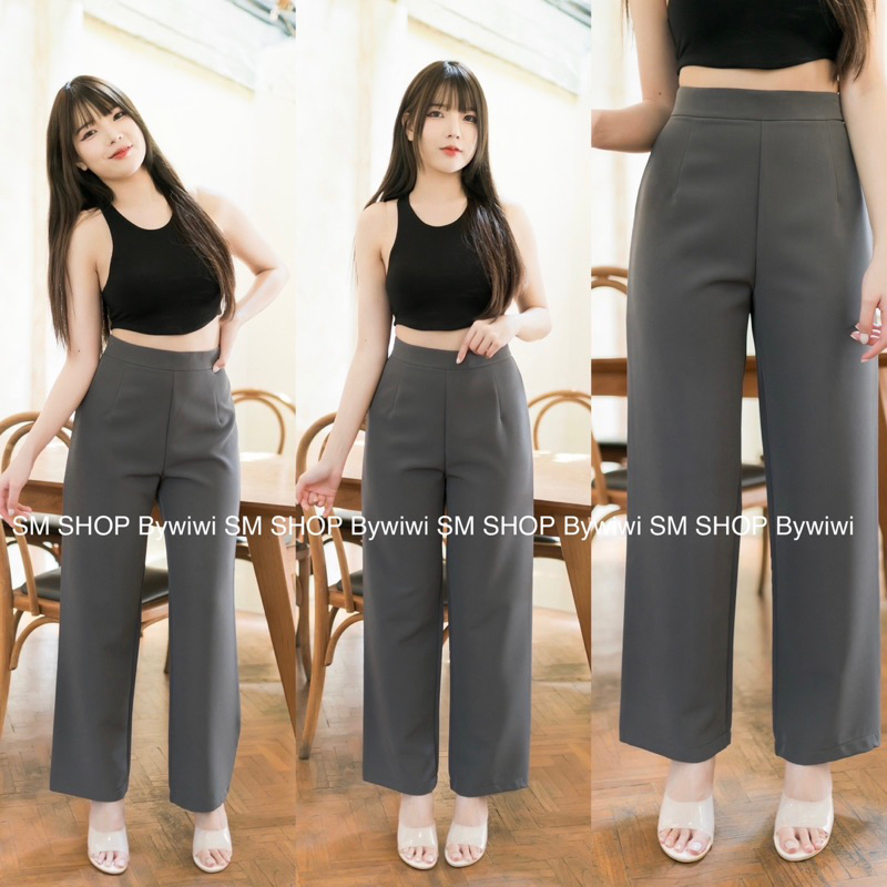 🌈 รุ่น S2🌈 กางเกงขายาว เอวสูง ขากระบอกใหญ่ซิปหลัง ผ้าไอวี่ผ้าเปเป้ S - 2XL มีเก็บเงินปลายทาง📦