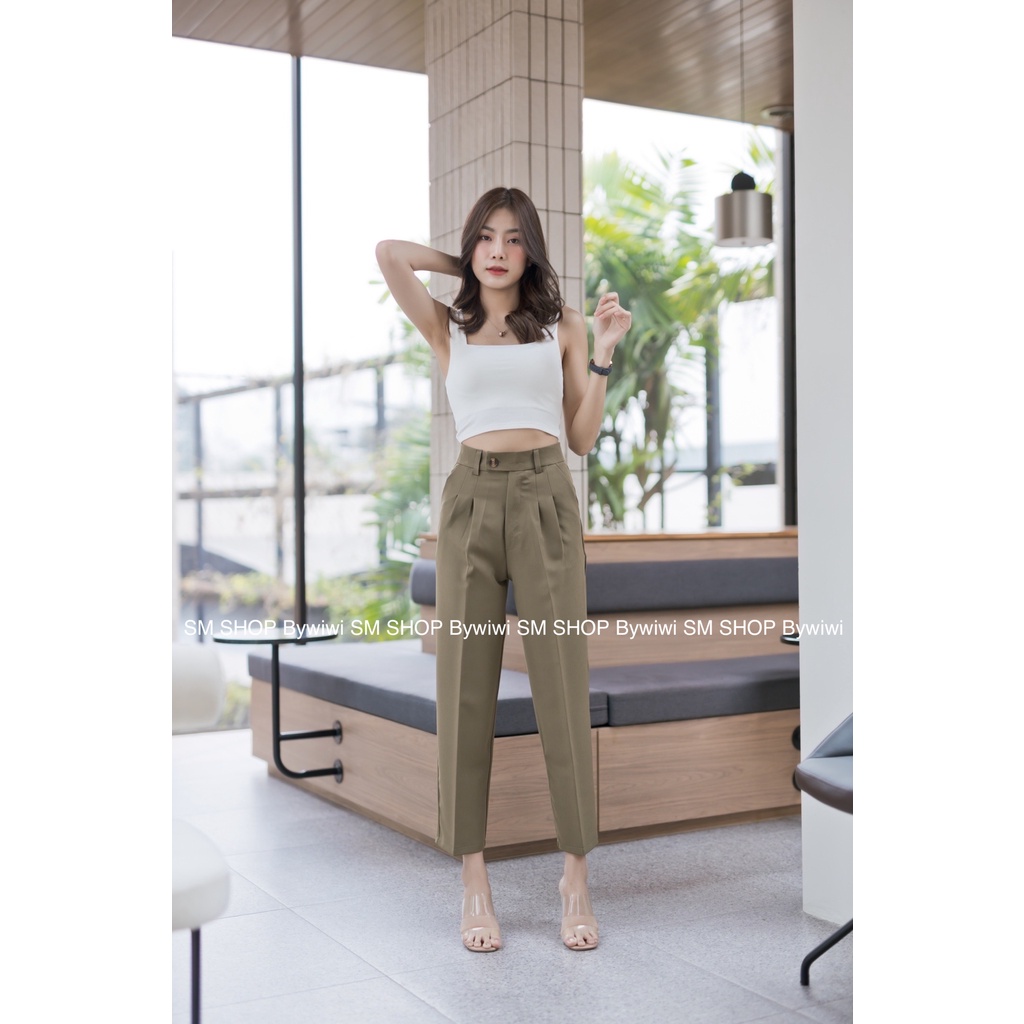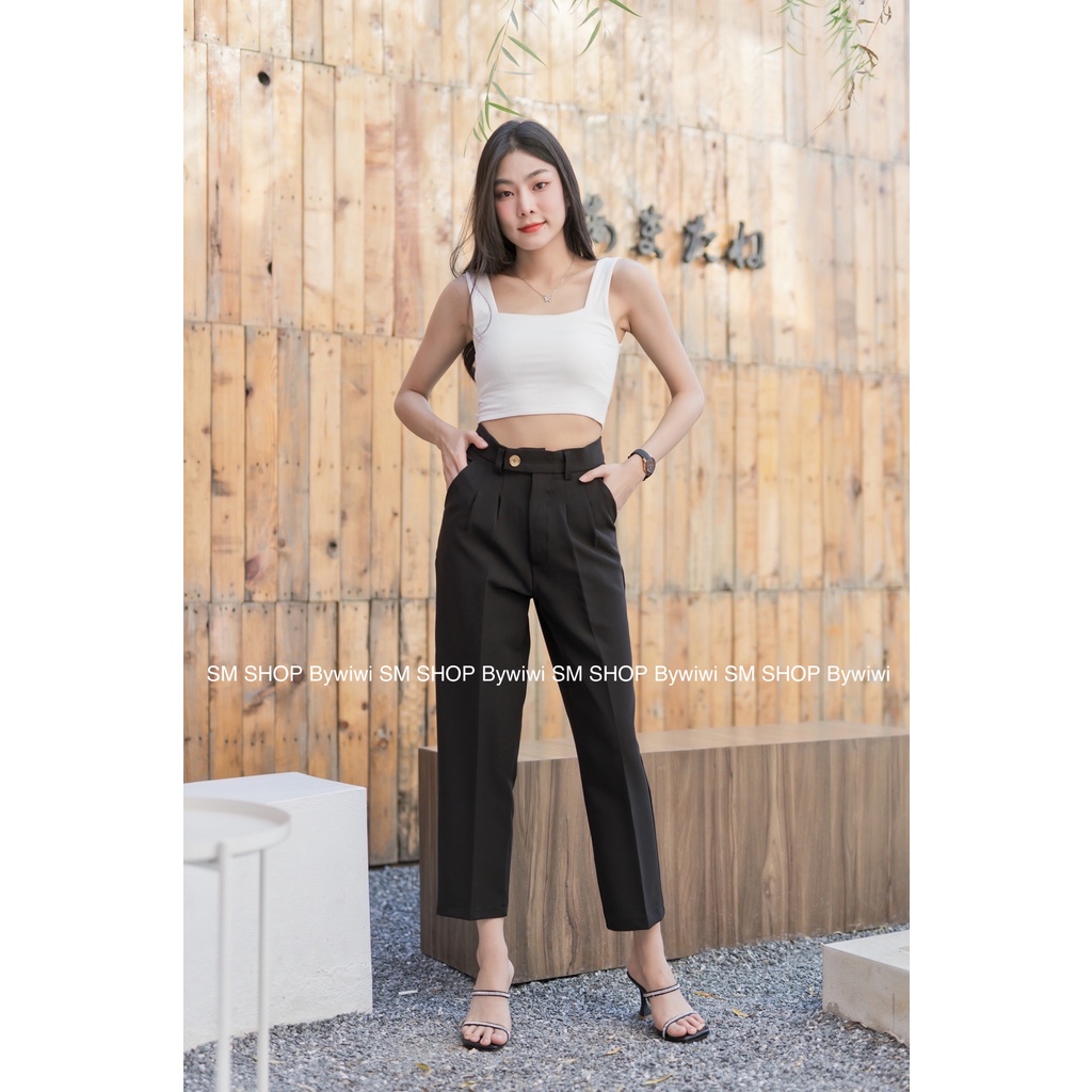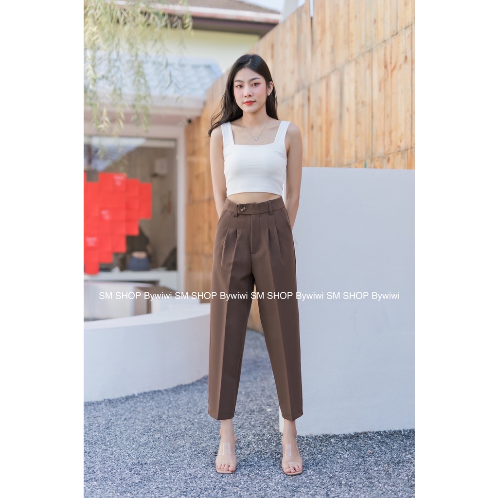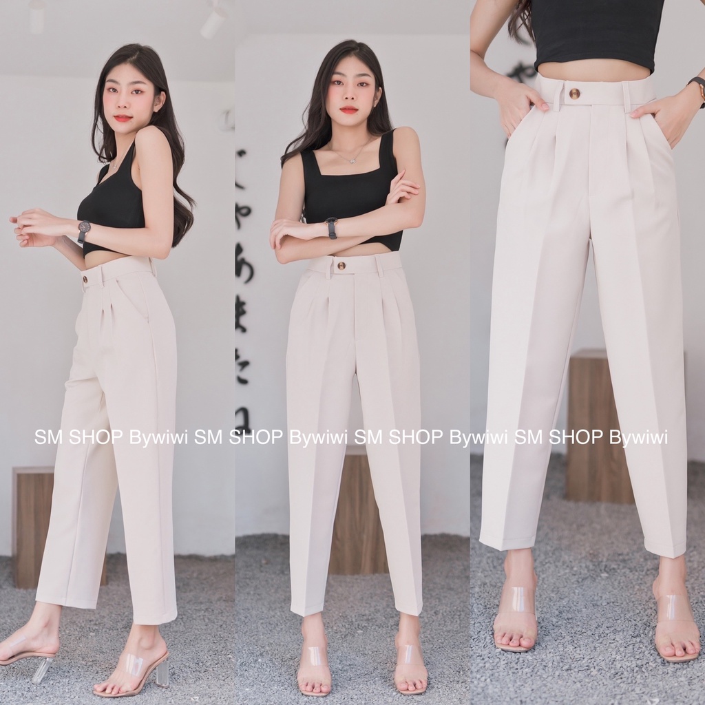 🌈รุ่น BB🌈ใหม่!กางเกงทรงบอยขายาว 9ส่วนเอวสูงขอบยื่นกระดุมหน้า ผ้าไอวี่หรือผ้าเปเป้ S-2XL มีเก็บเงินปลายทาง