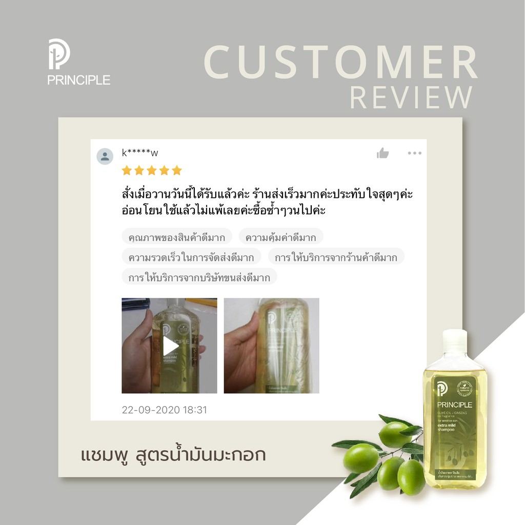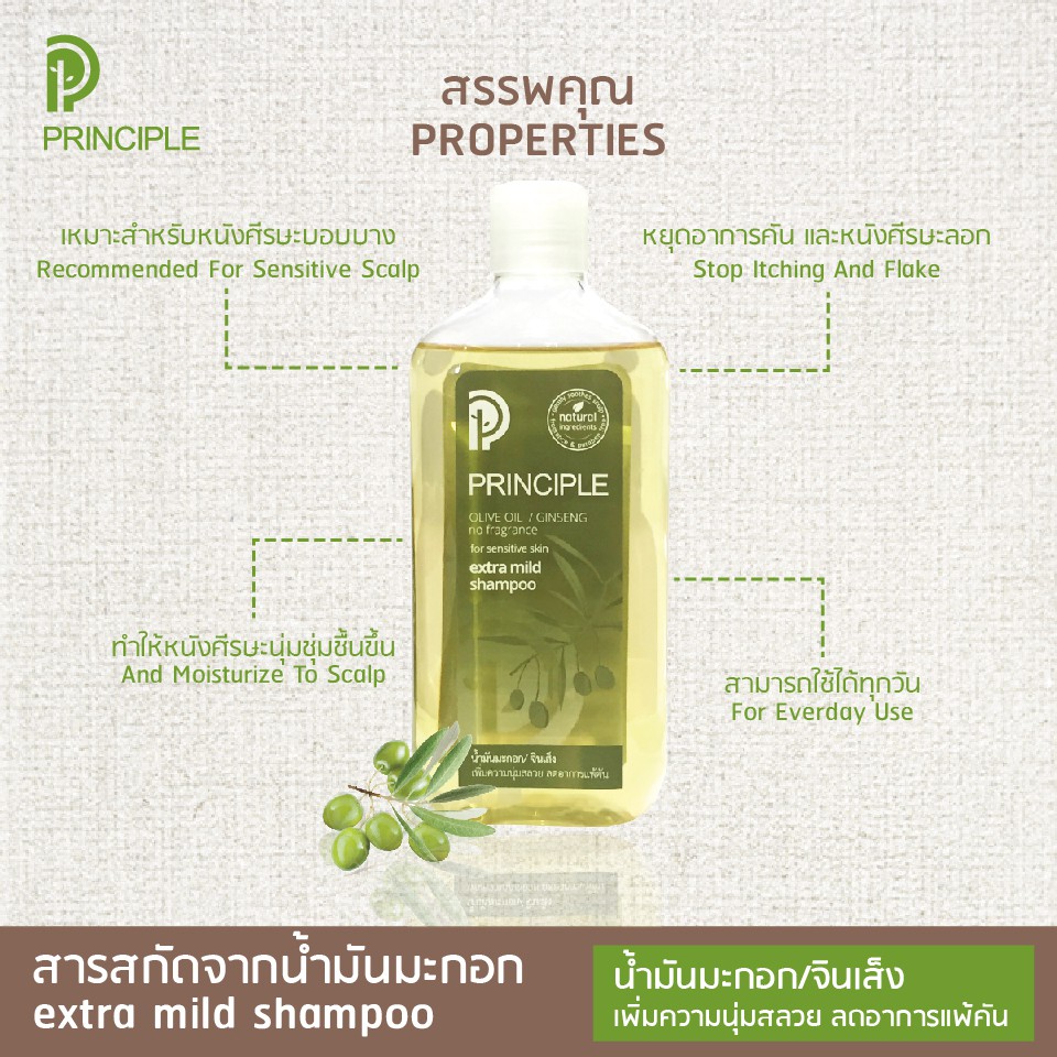 แชมพูสมุนไพร Principle พริ้นซิเพิล สูตรน้ำมันมะกอก ลดสิว ผิวแพ้ง่าย ปราศจากน้ำหอม อ่อนโยน เด็กใช้ได้