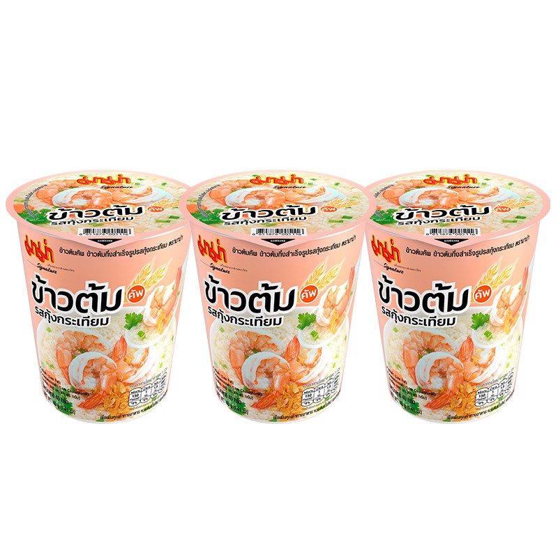 มาม่า ข้าวต้มคัพรสกุ้งกระเทียม แพ็ค 3