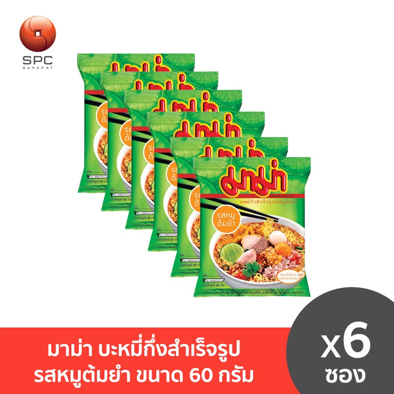 มาม่า บะหมี่กึ่งสำเร็จรูป รสหมูต้มยำ ขนาด 60 กรัม แพค 6