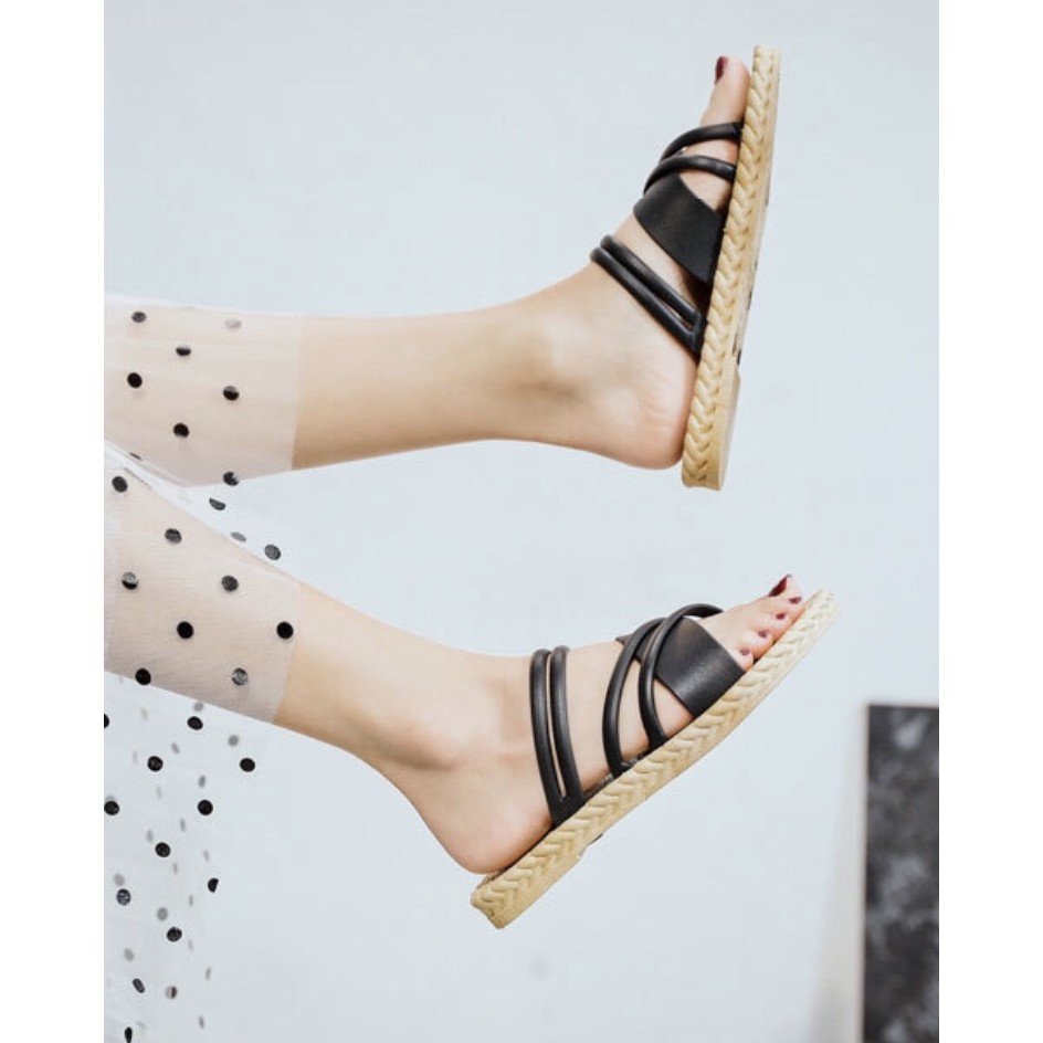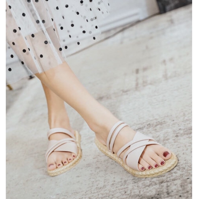 พร้อมส่ง รองเท้าแตะรัดส้น พื้นยางพาราลายเปีย สายหนังกลับ รุ่น 1930-1(แนะนำให้ซื้อเพิ่ม1เบอร์)