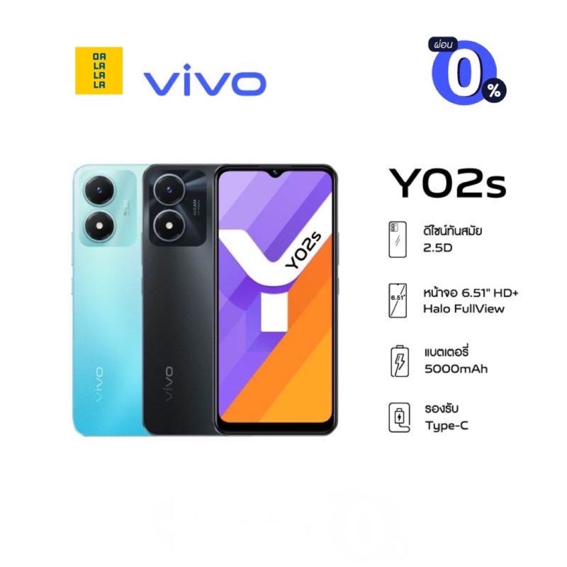 vivo Y02s [3+32GB] แบต5,000mAh เครื่องศูนย์แท้ รับประกันศูนย์ 1 ปี