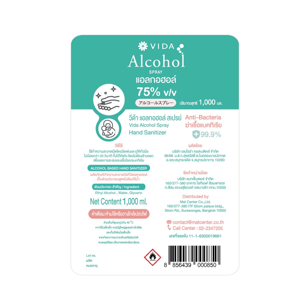 [Hot Item] VIDA SPRAY ALCOHOL 75% 1 ลิตร (วีด้า แอลกอฮอล์ สเปรย์ 75% 1 ลิตร)