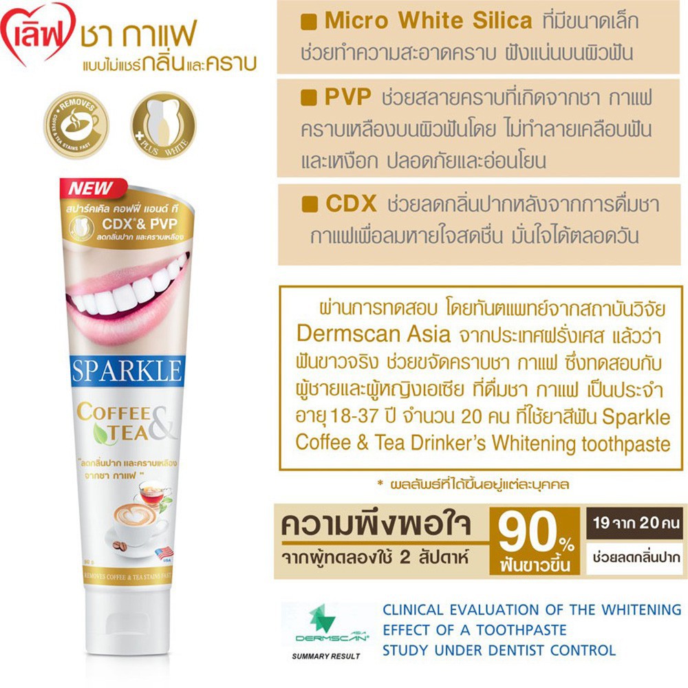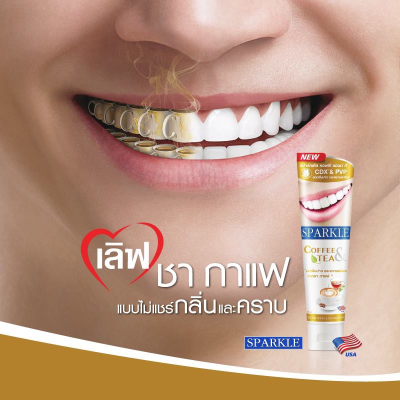 [แพ็ค 4] SPARKLE ยาสีฟัน ฟันขาว ขจัดคราบชา กาแฟ 90 กรัม สูตร COFFEE & TEA TOOTHPASTE (10SK00038X4)