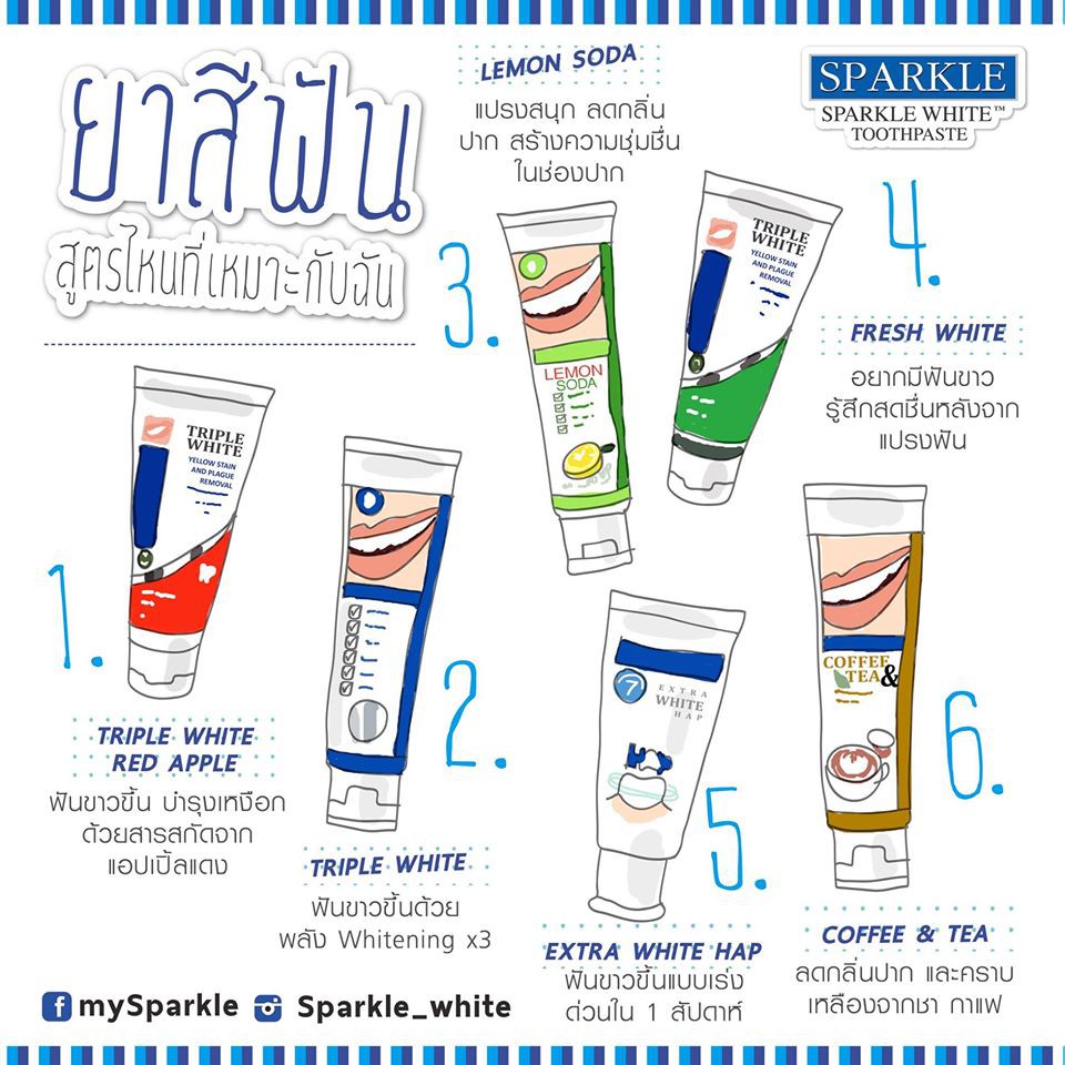SPARKLE ยาสีฟัน สูตร WHITE TOOTHPASTE สปาร์คเคิล ไวท์ 100 กรัม