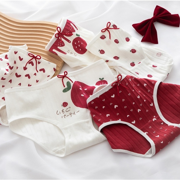 A-88 กางเกงใน ลายสตอเบอรี่ หัวใจ ผ้าบาง สวมใส่สบาย กระชับ ผ้ายืด