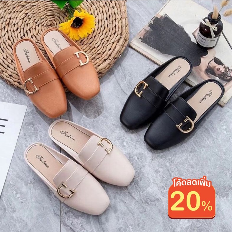 "ใส่โค้ด MTRPDSEP9 ลดเพิ่ม 20%"รองเท้าผู้หญิงแฟชั่นมี3สี รองเท้าคัชชูส์ ปิดหัวเปิดส้น พื้นแบนนิ่มสวมใส่สบาย(666)
