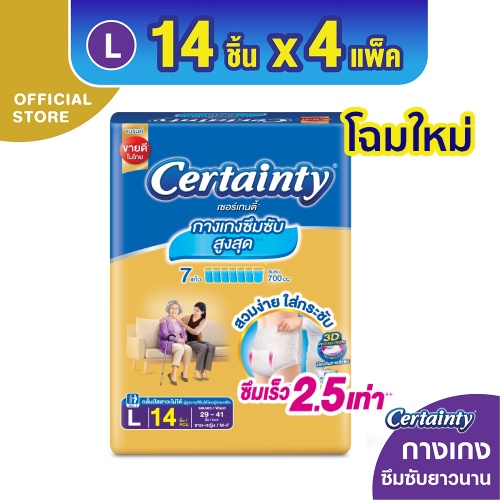 CERTAINTY GOLDPANTS ผ้าอ้อมผู้ใหญ่ กางเกงซึมซับ สูงสุดยาวนานโกลด์แพ้นส์ M-XL