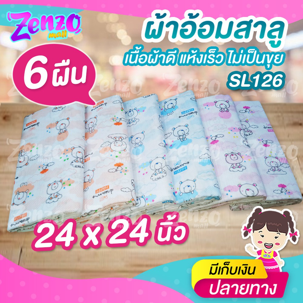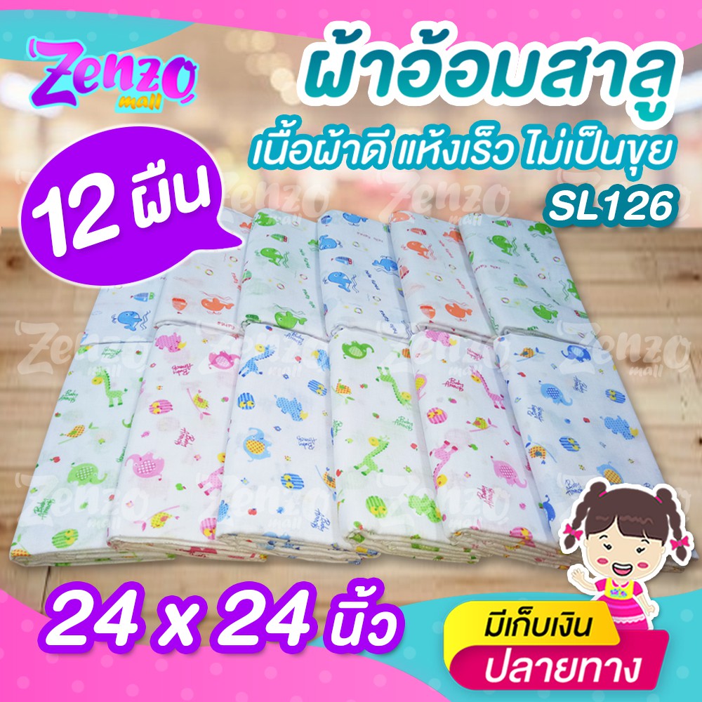 ผ้าอ้อมสาลู ผ้าอ้อมเด็กอ่อน 24×24 นิ้ว (แบบ 6 ผืน และ 12 ผืน) ระบายอากาศได้ดี ไม่อับชื้น ซักทำความสะอาดง่าย SL126