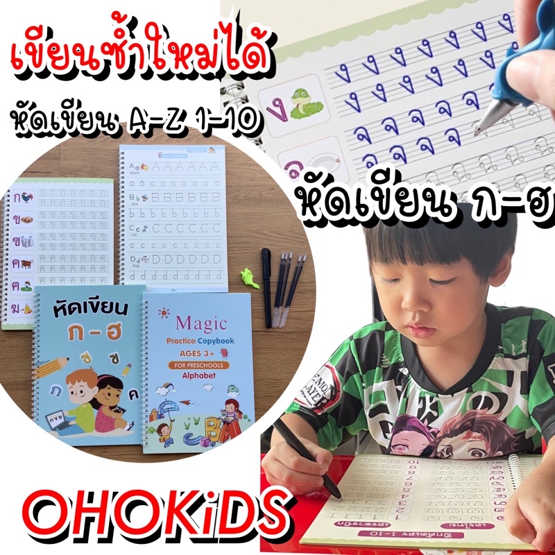 สมุดหัดเขียน ❤️ เล่มใหญ่ ❤️เขียนทับใหม่ได้ ภาษาไทย อังกฤษ ตัวเลข คัดไทย คัดอังกฤษ หัดเขียนก.ไก่ คัดไทย กไก่