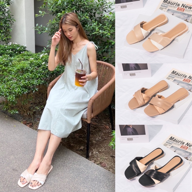 (ใส่ Code JRINWS622 ลดเพิ่ม 40) รองเท้าแตะ สายนิ่มพิเศษ ละมุนเท้า ใส่สบาย รุ่น Twotone