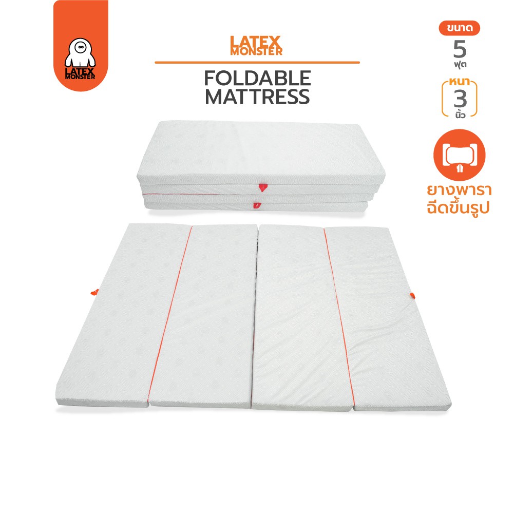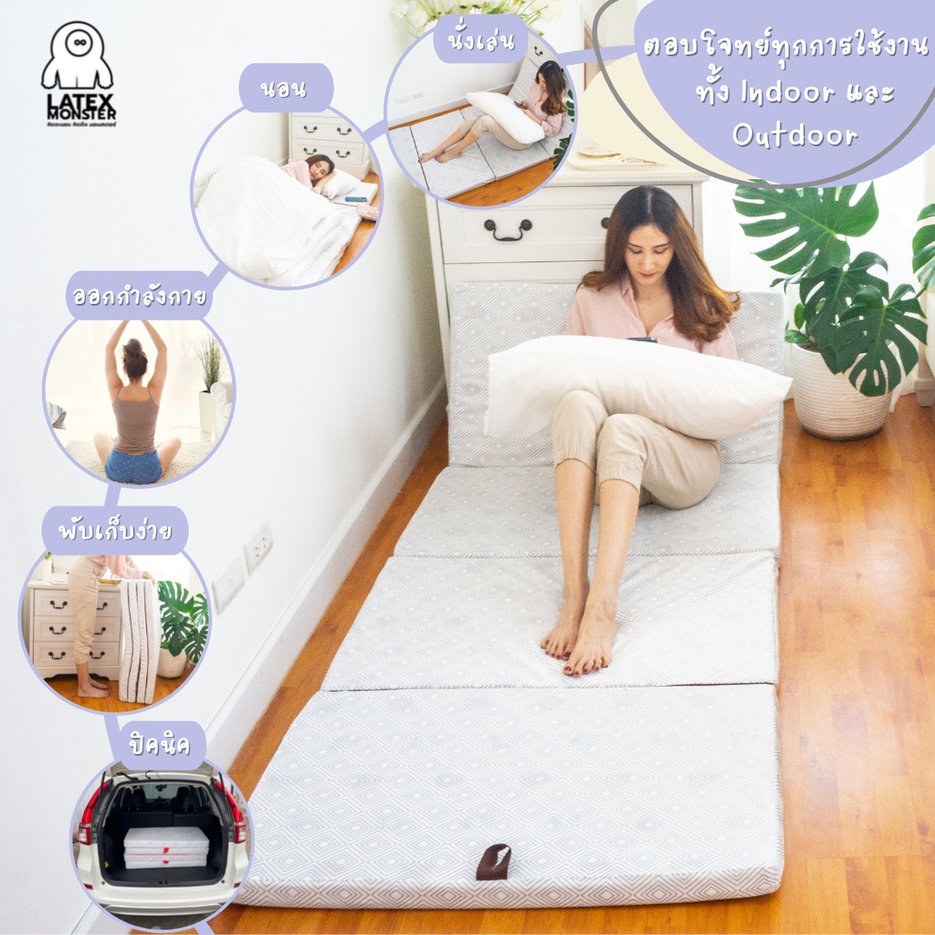 ที่นอนยางพาราพับได้ (4พับ)ที่นอนยางพาราปิคนิค **ยางพาราฉีดขึ้นรูป** มีซิปถอดซักได้ พกสะดวก▶️แถมหมอนฟรี