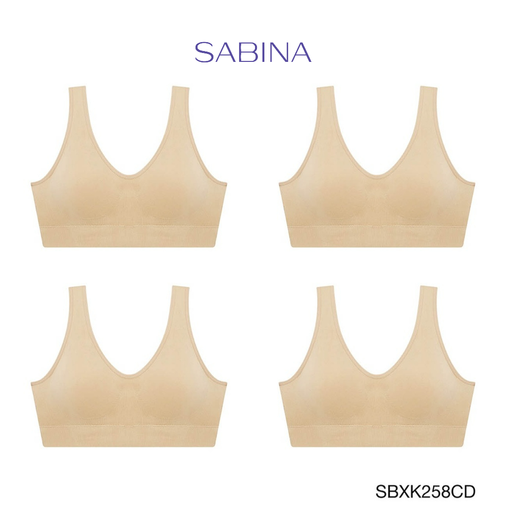 Sabina เสื้อชั้นใน (Set 4 ชิ้น) Invisible Wire (ไม่มีโครง) รุ่น Soft Collection รหัส SBXK258CD สีเนื้อเข้ม