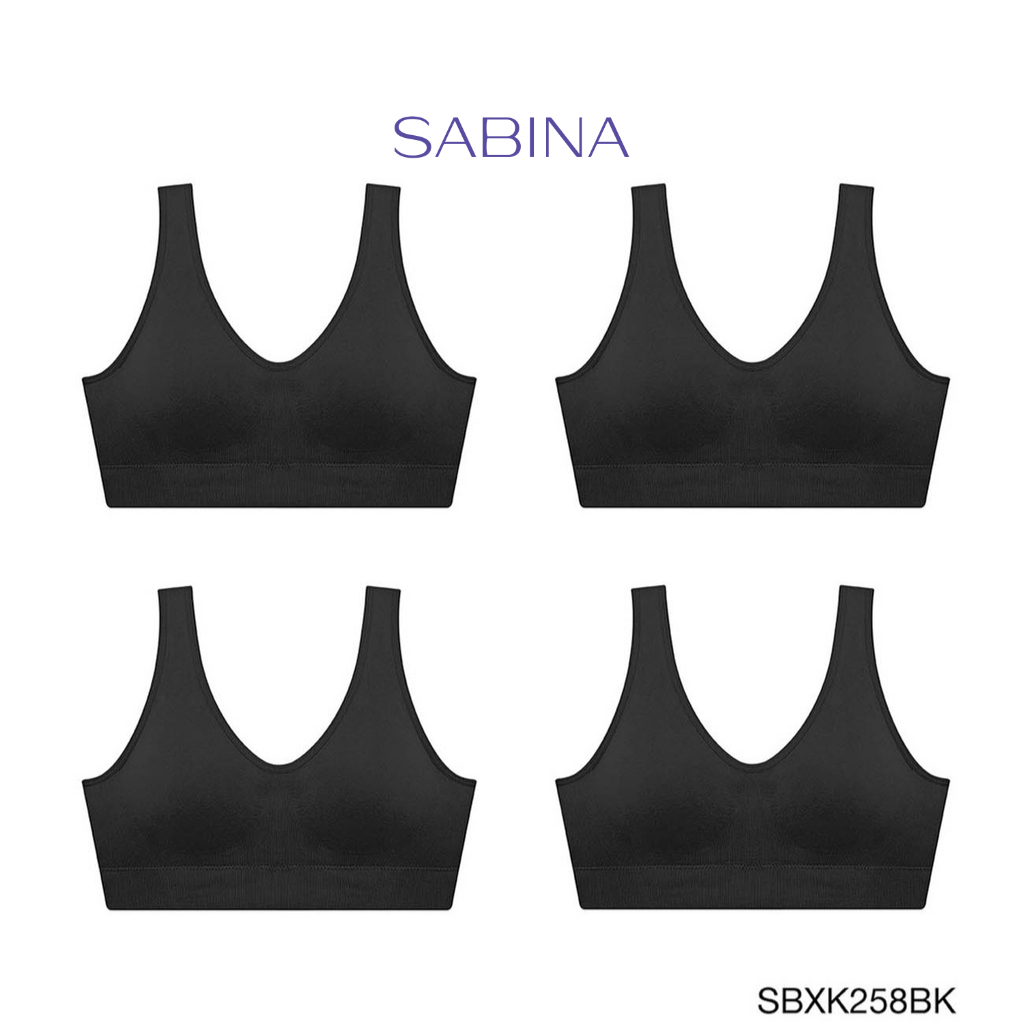 Sabina เสื้อชั้นใน (Set 4 ชิ้น) Invisible Wire (ไม่มีโครง) รุ่น Soft Collection รหัส SBXK258BK สีดำ