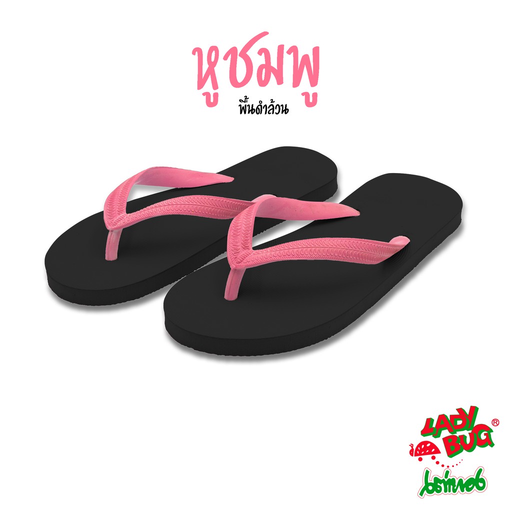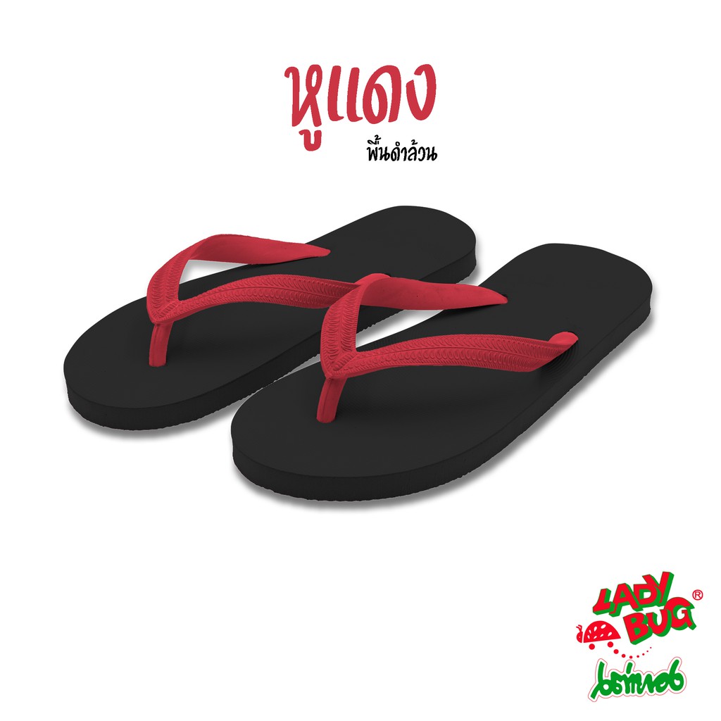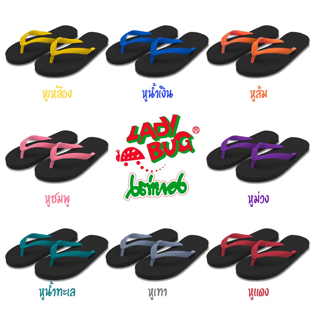 [59 บาท 12-14 พ.ย. + COONNOV79 +] LadyBug *** สินค้าขายดี *** รองเท้าแตะหูคีบ ตราเต่าทอง !!! พื้นดำล้วน หูหลากสี !!!